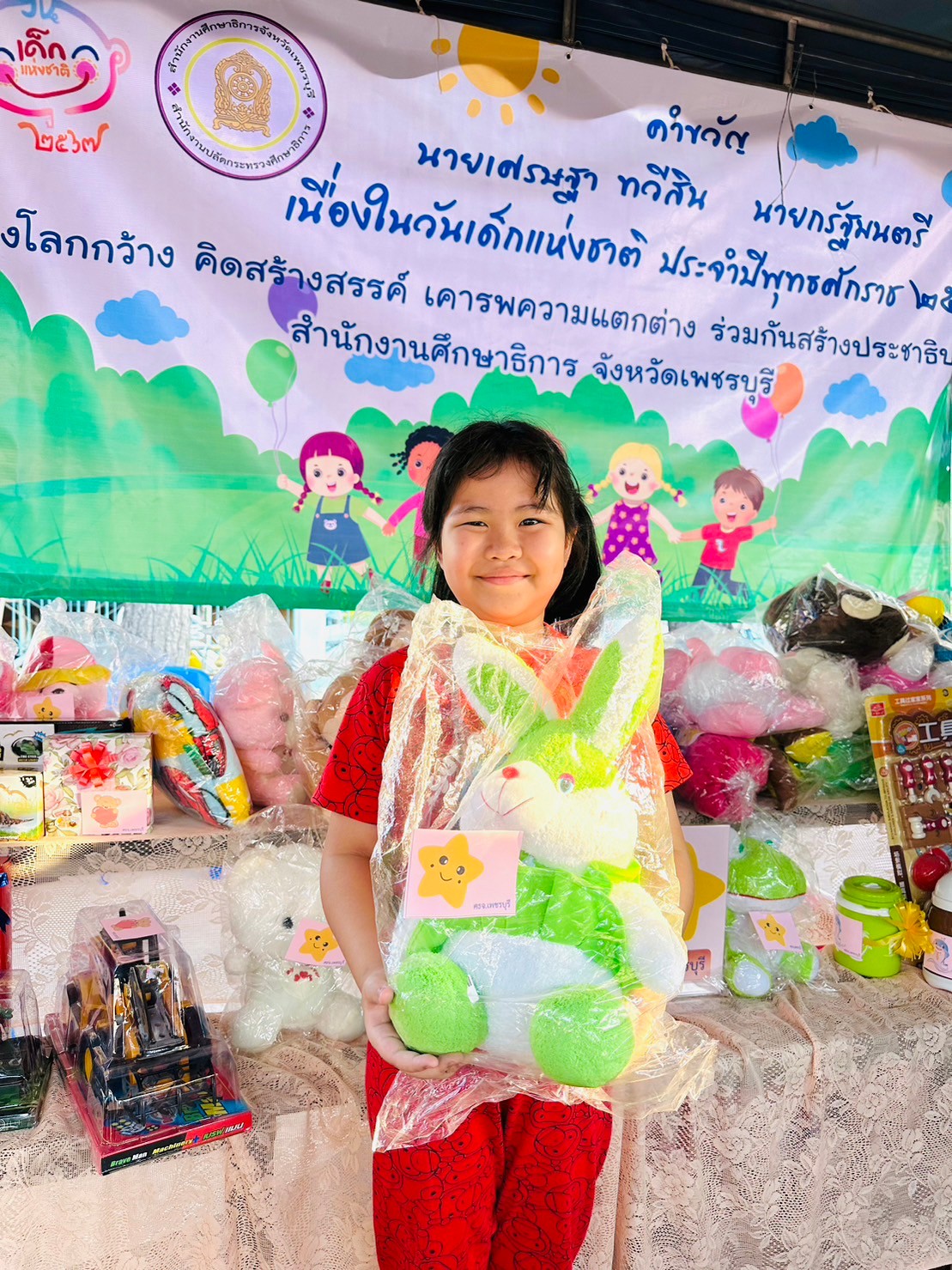 วันที่ 13 มกราคม พ.ศ. 2567 นายรุซลัญน์ เจ๊ะมิ ศึกษาธิการจังหวัดเพชรบุรี พร้อมด้วยบุคลากรกลุ่มพัฒนาการศึกษา และบุคลากรของสำนักงานศึกษาธิการจังหวัดเพชรบุรี ร่วมมือกับหน่วยงานทางการศึกษาจังหวัดเพชรบุรี ได้แก่ สพป.เพชรบุรี เขต 1 เขต 2 และ สพม.เพชรบุรี ร่วมจัดบูทกิจกรรม ของขวัญ และของเล่นมากมาย มอบเด็กๆ เนื่องในงานวันเด็กแห่งชาติ ประจำปี 2567 ซึ่งจังหวัดเพชรบุรีจัดขึ้น ณ ลานรัฐพิธี ศาลากลางจังหวัดเพชรบุรี โดยมีนายณัฏฐชัย นำพูลสุขสันติ์ ผู้ว่าราชการจังหวัดเพชรบุรี เป็นประธานเปิดงานฯ ทั้งนี้ขอขอบคุณชุดการแสดงพระรามยกรบทศกัณฑ์จาก รร.ปริยัติรังสรรค์ และชุดการแสดงฟ้อนร่มไม้ จาก รร.วัดทองนพคุณ ที่มาร่วมแสดงโชว์บนเวทีในโอกาสนี้