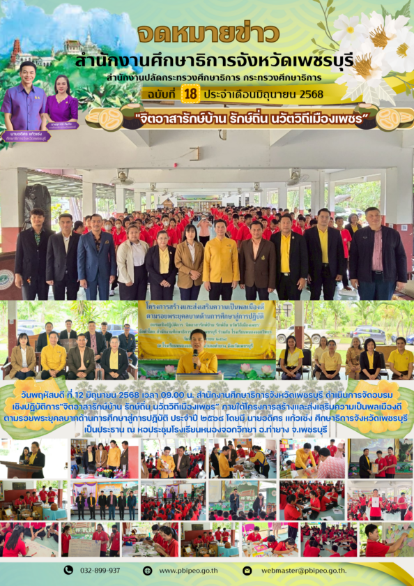 การอบรมเชิงปฏิบัติการ”จิตอาสารักษ์บ้าน รักษ์ถิ่น นวัตวิถีเมืองเพชร” ภายใต้โครงการสร้างและส่งเสริมความเป็นพลเมืองดี ตามรอยพระยุคลบาทด้านการศึกษาสู่การปฏิบัติ ประจำปี ๒๕๖๘