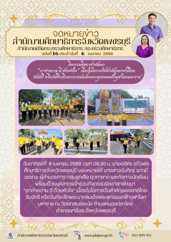 กิจกรรมจิตอาสาพัฒนา “เราทำความ ดี ด้วยหัวใจ” เนื่องในโอกาสวันสำคัญของชาติไทย วันจักรี หรือวันที่ระลึกพระบาทสมเด็จพระพุทธยอดฟ้าจุฬาโลกมหาราช