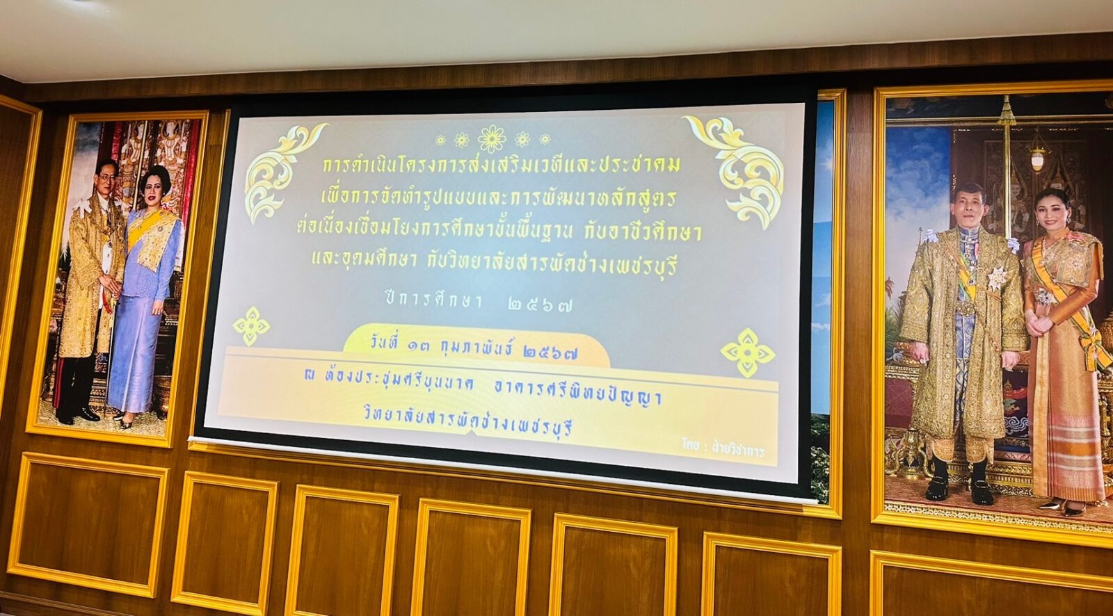 วันอังคาร ที่ 13 กุมภาพันธ์ พ.ศ. 2567 นายรุซลัญน์ เจ๊ะมิ ศึกษาธิการจังหวัดเพชรบุรี มอบหมายให้ นางยุพาภรณ์ จงเจริญ ผู้อำนวยการกลุ่มพัฒนาการศึกษา พร้อมด้วยเจ้าหน้าที่กลุ่มพัฒนาการศึกษา ประชุมเชิงปฏบัติการร่วมกับคณะกรรมการฯ ศึกษานิเทศก์ จากเขตพื้นที่การศึกษาในจังหวัดเพชรบุรี ทั้ง 3 เขต คณะครูและผู้บริหาร จากวิทยาลัยสารพัดช่างเพชรบุรี และคณะครูและผู้บริหารจาก โรงเรียนวชิรธรรมโศภิต สังกัด สพม.เพชรบุรี โรงเรียนวัดนาพรม (มนมหาวิริยาคาร) สังกัด สพป.เพชรบุรี เขต 1 โรงเรียนบ้านซ่อง (ประชากรบำรุง) สังกัด สพป.เพชรบุรี เขต 2 (ขับคลื่อนโครงการส่งเสริมเวทีและประชาคมเพื่อการจัดทำรูปแบบและแนวทางการพัฒนาหลักสูตรต่อเนื่องเชื่อมโยงการศึกษาขั้นพื้นฐานกับอาชีวศึกษาและอุดมศึกษา ประจำปีการศึกษา 2567 ในกิจกรรมการวิพากษ์หลักสูตร ณ ห้องประชุมศรีบุนนาค อาคารศรีพิทยปัญญา วิทยาลัยสารพัดช่างเพชรบุรี อำเภอเมืองฯ จังหวัดเพชรบุรี