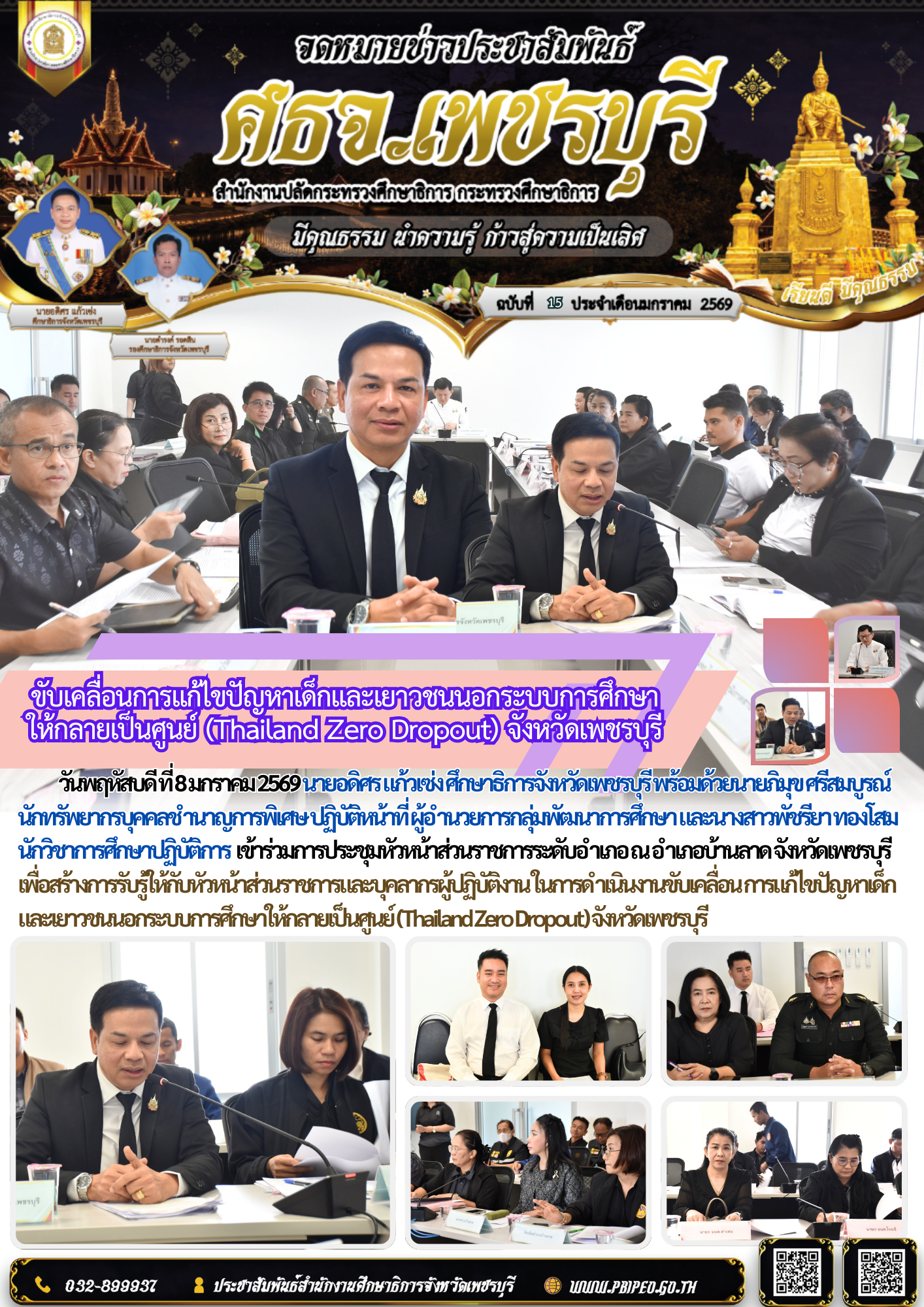 ขับเคลื่อนการแก้ไขปัญหาเด็กและเยาวชนนอกระบบการศึกษา ให้กลายเป็นศูนย์ (Thailand Zero Dropout) จังหวัดเพชรบุรี