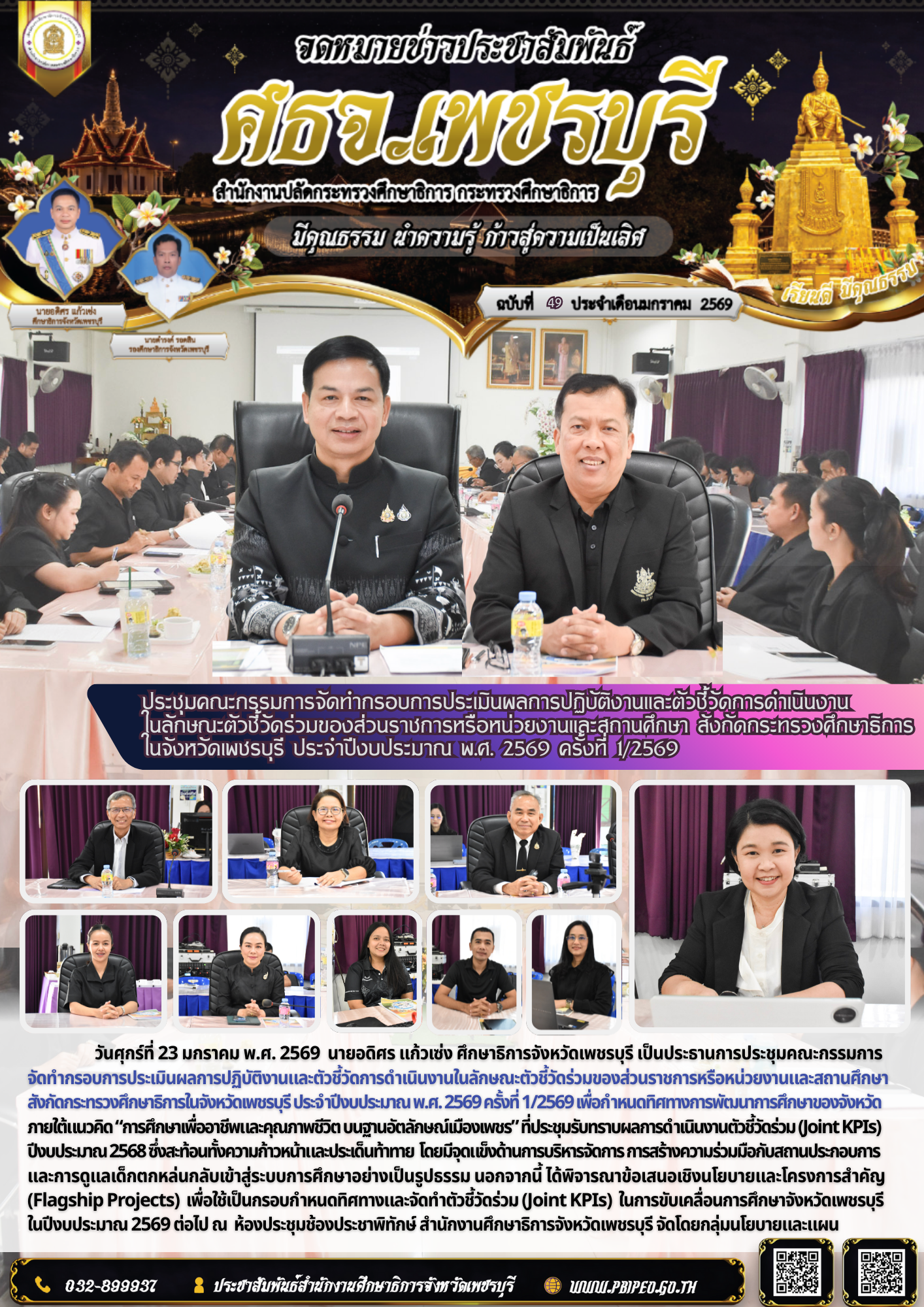 ประชุมคณะกรรมการจัดทำกรอบการประเมินผลการปฏิบัติงานและตัวชี้วัดการดำเนินงาน ในลักษณะตัวชี้วัดร่วมของส่วนราชการหรือหน่วยงานและสถานศึกษา สังกัดกระทรวงศึกษาธิการ ในจังหวัดเพชรบุรี ประจำปีงบประมาณ พ.ศ. 2569 ครั้งที่ 1/2569