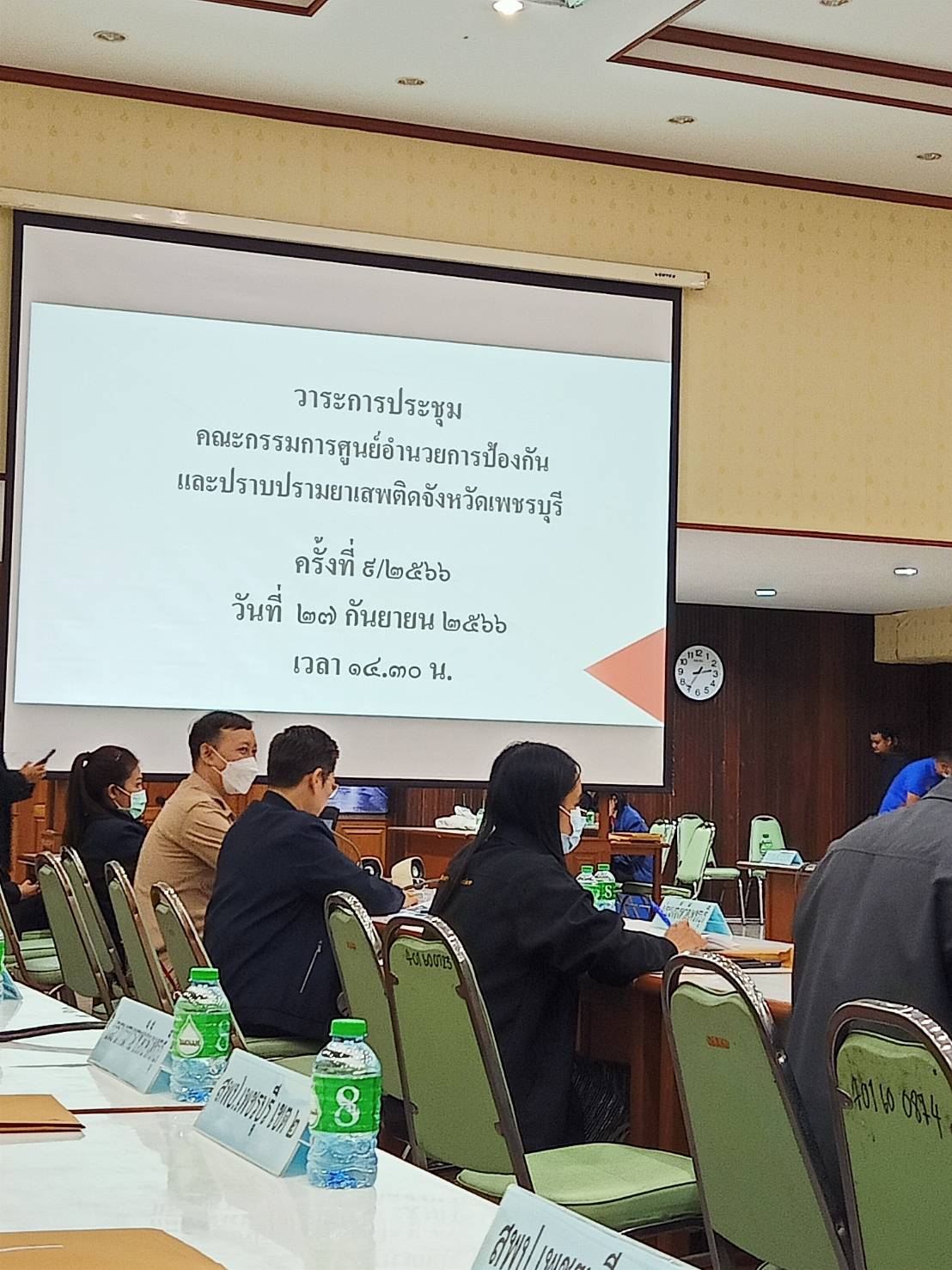 วันพุธ ที่ 27 กันยายน พ.ศ. 2566 นางสาวสุนิตย์ ดีประหลาด ศึกษาธิการจังหวัดเพชรบุรี มอบหมายให้ นางเปรมฤทัย พงษ์พันธุ์ นักวิชาการศึกษาชำนาญการ เข้าร่วมประชุมคณะกรรมการศูนย์อำนวยการป้องกันและปราบปรามยาเสพติดจังหวัดเพชรบุรี ครั้งที่ 9/2566 ณ ห้องประชุมพริบพรี ชั้น 2 ศาลากลางจังหวัดเพชรบุรี อำเภอเมืองเพชรบุรี จังหวัดเพชรบุรี โดยมีนายปิยพงศ์ ชูวงศ์ รองผู้ว่าราชการจังหวัดเพชรบุรี เป็นประธานในการประชุมดังกล่าว