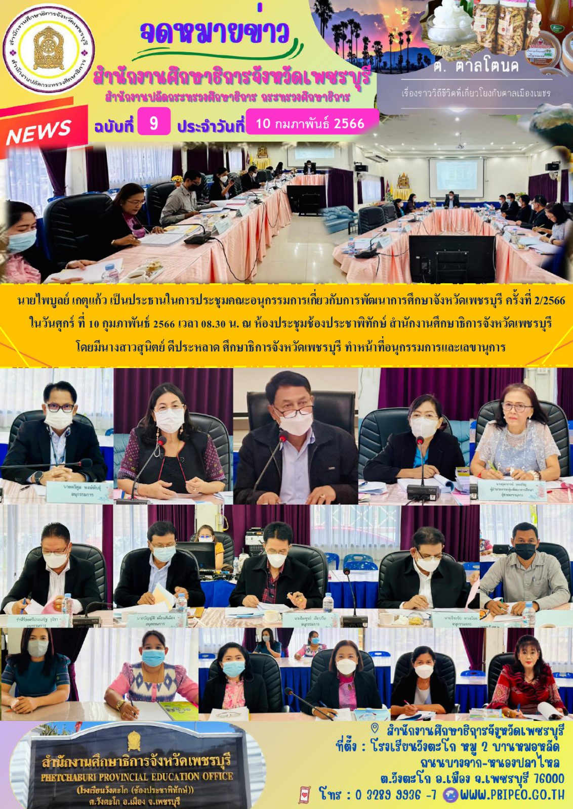 นายไพบูลย์ เกตุแก้ว เป็นประธานในการประชุมคณะอนุกรรมการเกี่ยวกับการพัฒนาการศึกษาจังหวัดเพชรบุรี ครั้งที่ 2/2566 ในวันศุกร์ ที่ 10 กุมภาพันธ์ 2566 เวลา 08.30 น. ณ ห้องประชุมช้องประชาพิทักษ์ สำนักงานศึกษาธิการจังหวัดเพชรบุรี โดยมีนางสาวสุนิตย์ ดีประหลาด ศึกษาธิการจังหวัดเพชรบุรี ทำหน้าที่อนุกรรมการและเลขานุการ