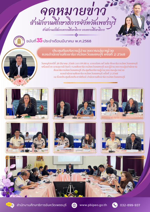 ประชุมทีมบริหารผู้อำนวยการกลุ่ม/หน่วย ของสำนักงานศึกษาธิการจังหวัดเพชรบุรี ครั้งที่ 2/2568