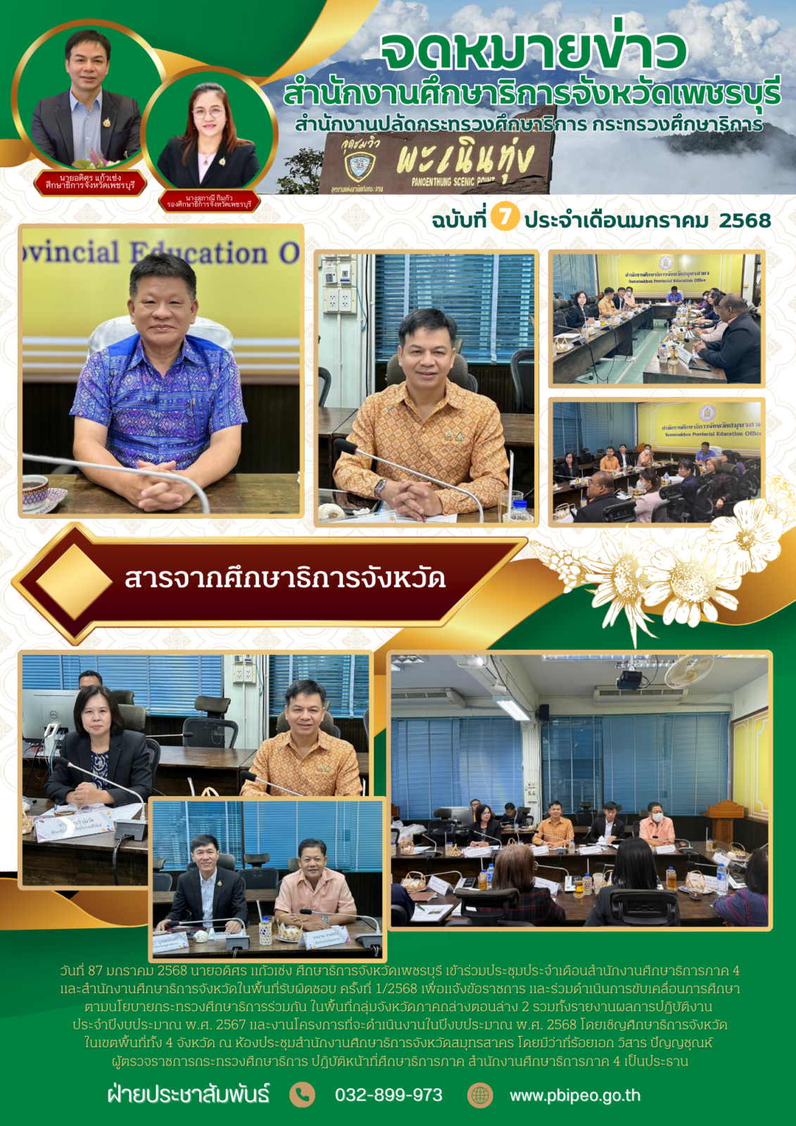 ประชุมประจำเดือนสำนักงานศึกษาธิการภาค 4 และสำนักงานศึกษาธิการจังหวัดในพื้นที่รับผิดชอบ ครั้งที่ 1/2568 เพื่อแจ้งข้อราชการ และร่วมดำเนินการขับเคลื่อนการศึกษาตามนโยบายกระทรวงศึกษาธิการร่วมกัน ในพื้นที่กลุ่มจังหวัดภาคกล่างตอนล่าง 2 รวมทั้งรายงานผลการปฏิบัติงานประจำปีงบประมาณ พ.ศ. 2567 และงานโครงการที่จะดำเนินงานในปีงบประมาณ พ.ศ. 2568