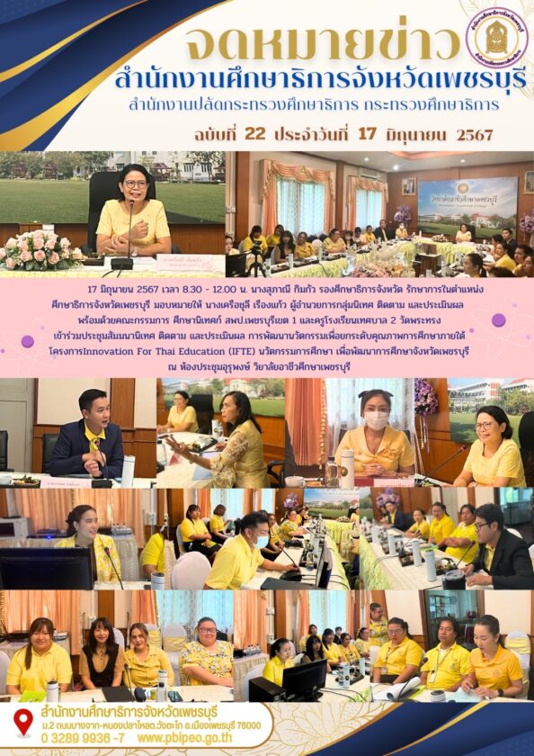 ประชุมสัมมนานิเทศ ติดตาม และประเมินผล การพัฒนานวัตกรรมเพื่อยกระดับคุณภาพการศึกษาภายใต้ โครงการInnovation For Thai Education (IFTE) นวัตกรรมการศึกษา เพื่อพัฒนาการศึกษาจังหวัดเพชรบุรี