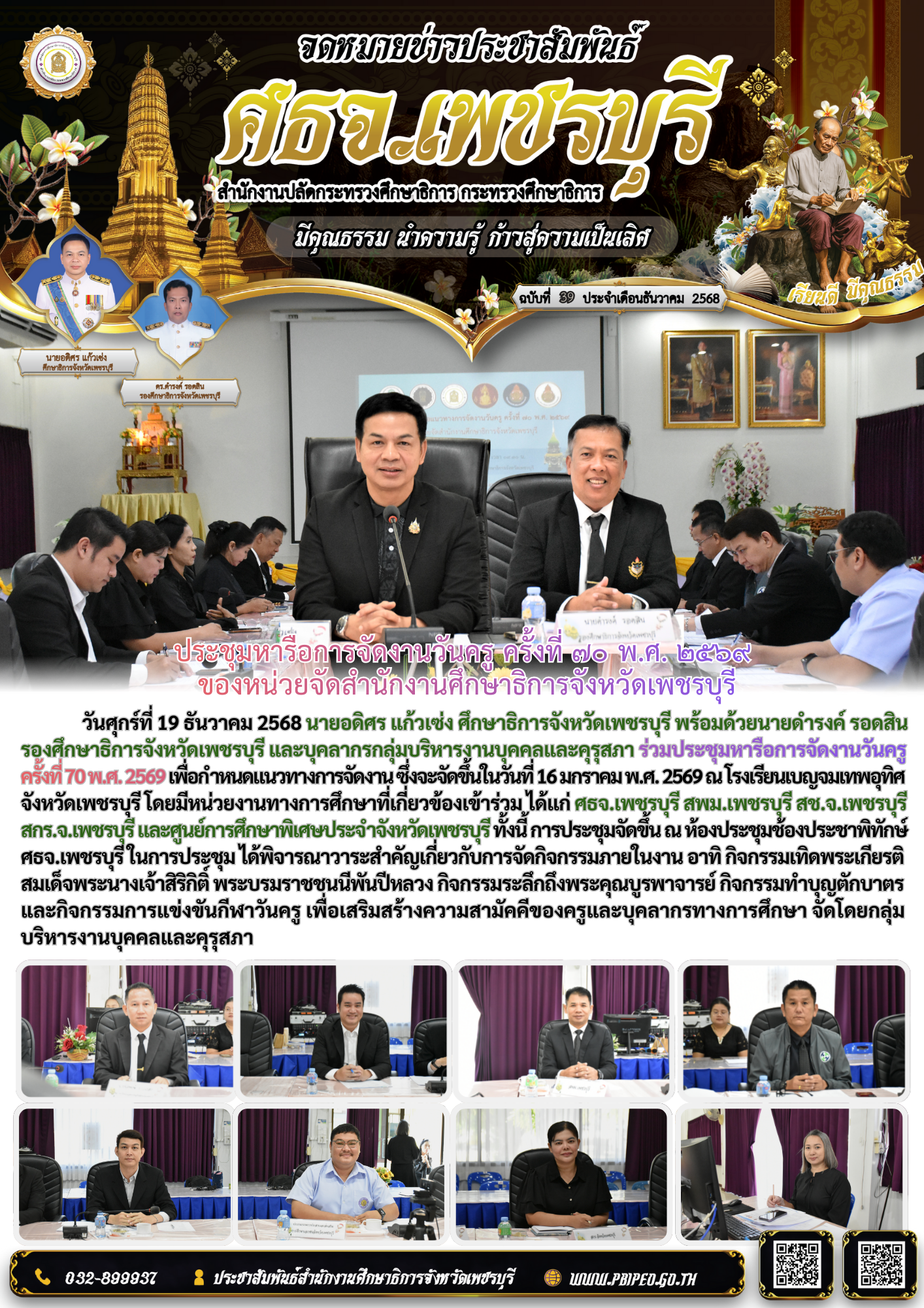 ประชุมหารือการจัดงานวันครู ครั้งที่ ๗๐ พ.ศ. ๒๕๖๙ ของหน่วยจัดสำนักงานศึกษาธิการจังหวัดเพชรบุรี
