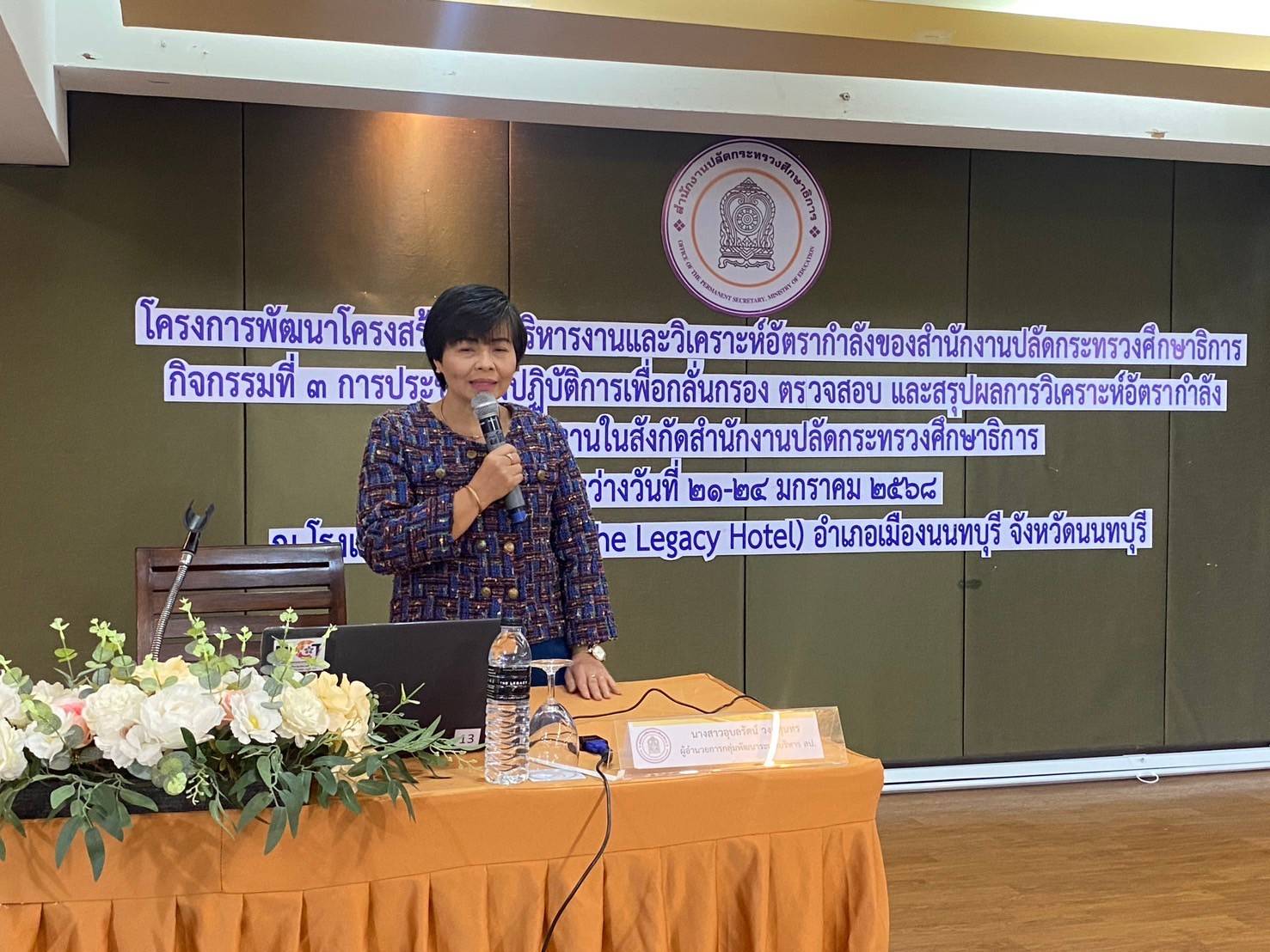 นายอดิศร แก้วเซ่ง ศึกษาธิการจังหวัดเพชรบุรี มอบหมายให้ นางยุพาภรณ์ จงเจริญ ผู้อำนวยการกลุ่มพัฒนาการศึกษาร่วมประชุมเชิงปฏิบัติการกลั่นกรอง ตรวจสอบ และสรุปผลการวิเคราะห์อัตรากำลังของหน่วยงานในสังกัด สำนักงานปลัดกระทรวงศึกษาธิการ ระหว่างวันที่ 21 – 24 มกราคม 2568 ณ โรงแรมเดอะ เลกาซี อ.เมืองฯ จ.นนทบุรี โดยมีนางสาวอุบลรัตน์ วงศ์สุนทร ผู้อำนวยการกลุ่มพัฒนาระบบบริหาร สป. เป็นประธานในการประชุม