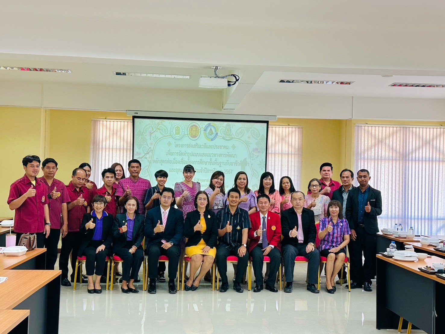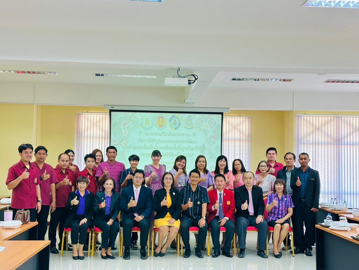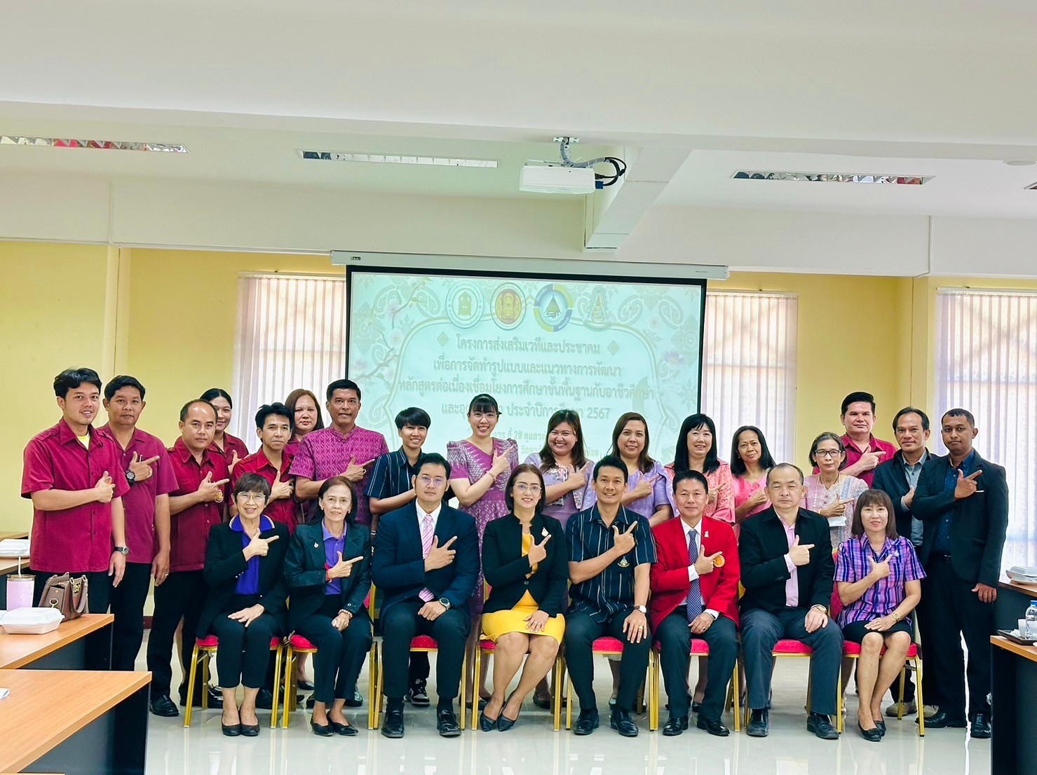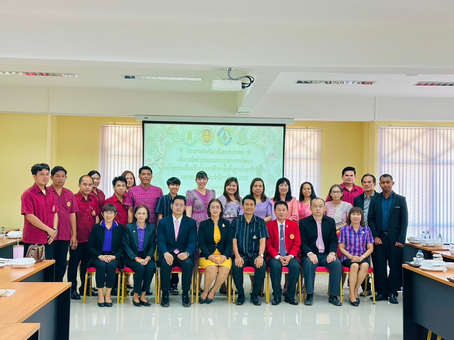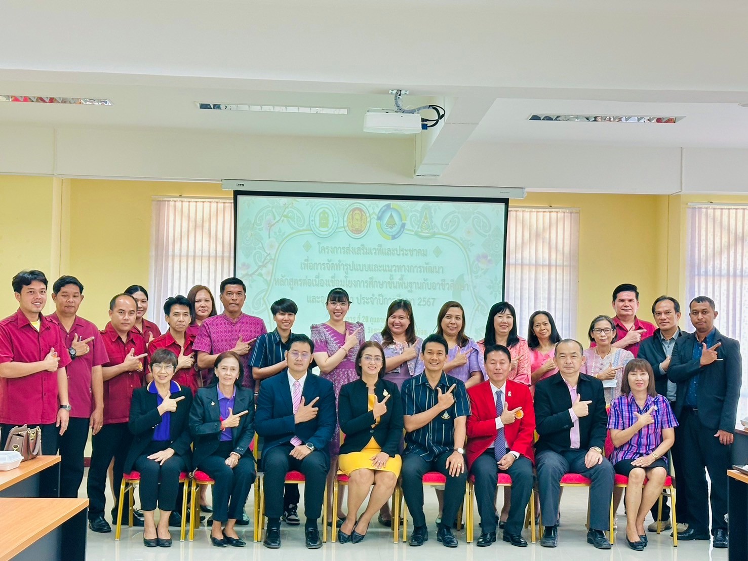 วันอังคาร ที่ 20 กุมภาพันธ์ พ.ศ. 2567 นายรุซลัญน์ เจ๊ะมิ ศึกษาธิการจังหวัดเพชรบุรี มอบหมายให้ นางยุพาภรณ์ จงเจริญ ผู้อำนวยการกลุ่มพัฒนาการศึกษา พร้อมด้วยเจ้าหน้าที่กลุ่มพัฒนาการศึกษา ประชุมเชิงปฏิบัติการร่วมกับคณะกรรมการพัฒนาหลักสูตรฯ คณะครู และผู้บริหาร จากวิทยาลัยการอาชีพเขาย้อย และคณะครูและผู้บริหารจาก รร.วัดหนองปรง (บุญมานุสรณ์) รร.บ้านหนองชุมพล สังกัด สพป.พบ 1 และ รร.หนองหญ้าปล้องวิทยา สังกัด สพม.เพชรบุรี ขับคลื่อนโครงการส่งเสริมเวทีและประชาคมเพื่อการจัดทำรูปแบบและแนวทางการพัฒนาหลักสูตรต่อเนื่องเชื่อมโยงการศึกษาขั้นพื้นฐานกับอาชีวศึกษาและอุดมศึกษา ประจำปีการศึกษา 2567 ในกิจกรรมการวิพากษ์หลักสูตร ณ ห้องประชุมตาลโตนด วิทยาลัยการอาชีพเขาย้อย อำเภอเขาย้อย จังหวัดเพชรบุรี