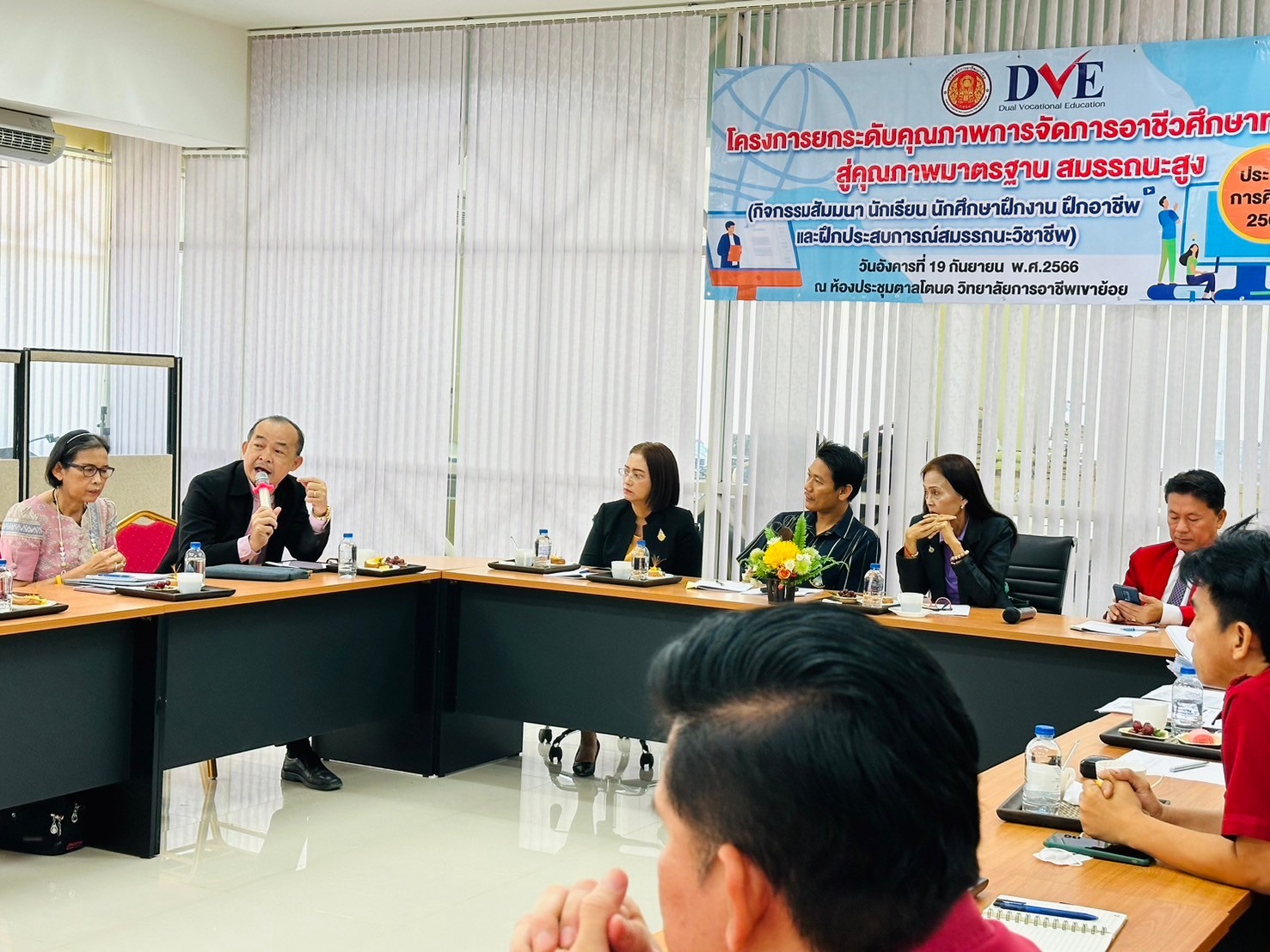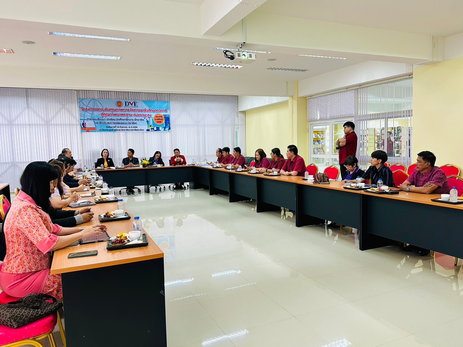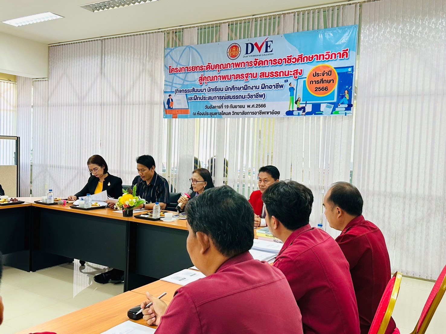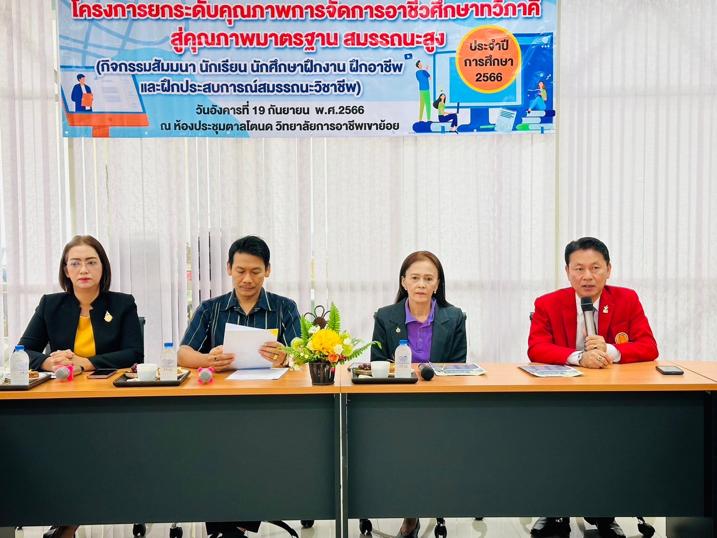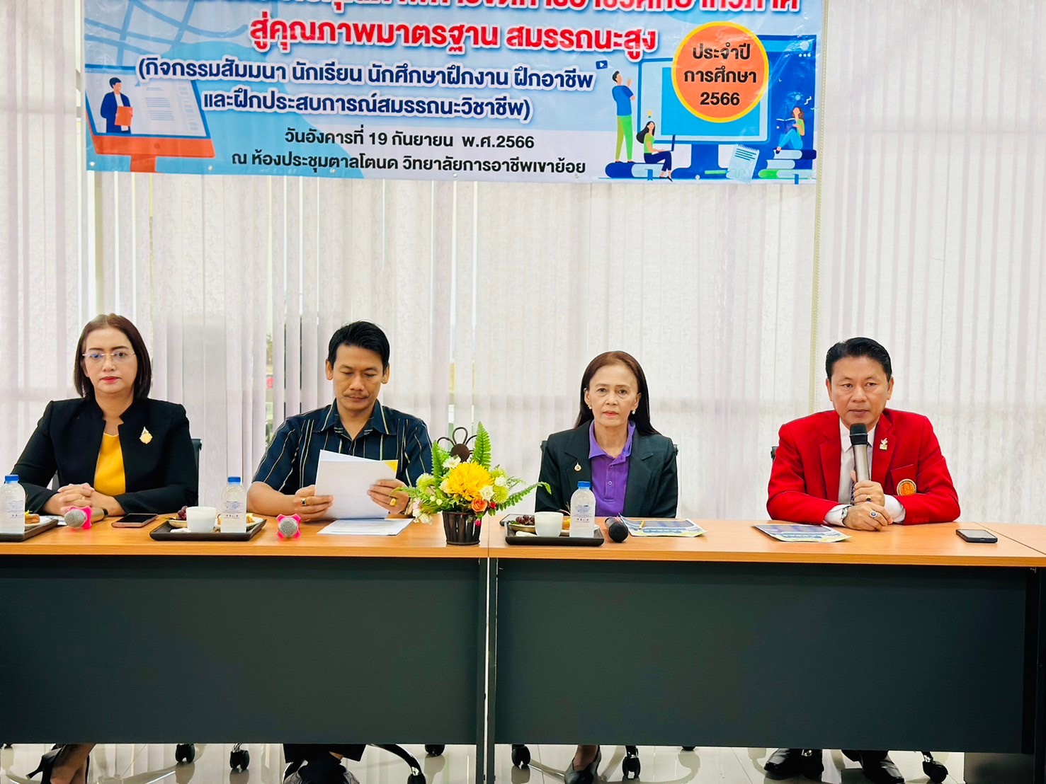 วันอังคาร ที่ 20 กุมภาพันธ์ พ.ศ. 2567 นายรุซลัญน์ เจ๊ะมิ ศึกษาธิการจังหวัดเพชรบุรี มอบหมายให้ นางยุพาภรณ์ จงเจริญ ผู้อำนวยการกลุ่มพัฒนาการศึกษา พร้อมด้วยเจ้าหน้าที่กลุ่มพัฒนาการศึกษา ประชุมเชิงปฏิบัติการร่วมกับคณะกรรมการพัฒนาหลักสูตรฯ คณะครู และผู้บริหาร จากวิทยาลัยการอาชีพเขาย้อย และคณะครูและผู้บริหารจาก รร.วัดหนองปรง (บุญมานุสรณ์) รร.บ้านหนองชุมพล สังกัด สพป.พบ 1 และ รร.หนองหญ้าปล้องวิทยา สังกัด สพม.เพชรบุรี ขับคลื่อนโครงการส่งเสริมเวทีและประชาคมเพื่อการจัดทำรูปแบบและแนวทางการพัฒนาหลักสูตรต่อเนื่องเชื่อมโยงการศึกษาขั้นพื้นฐานกับอาชีวศึกษาและอุดมศึกษา ประจำปีการศึกษา 2567 ในกิจกรรมการวิพากษ์หลักสูตร ณ ห้องประชุมตาลโตนด วิทยาลัยการอาชีพเขาย้อย อำเภอเขาย้อย จังหวัดเพชรบุรี