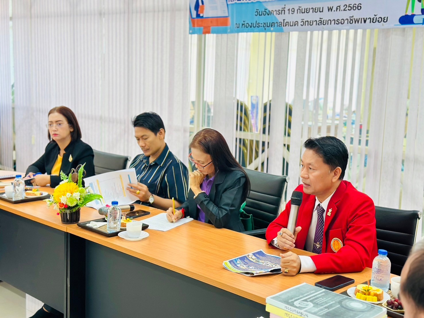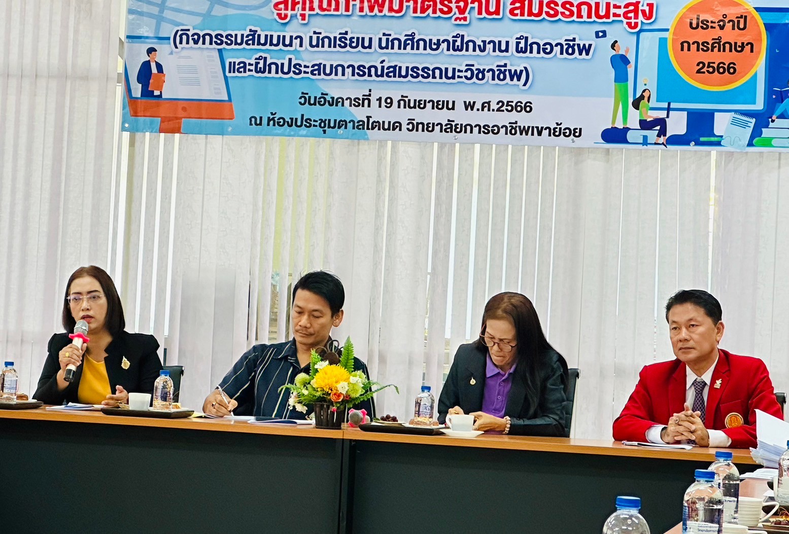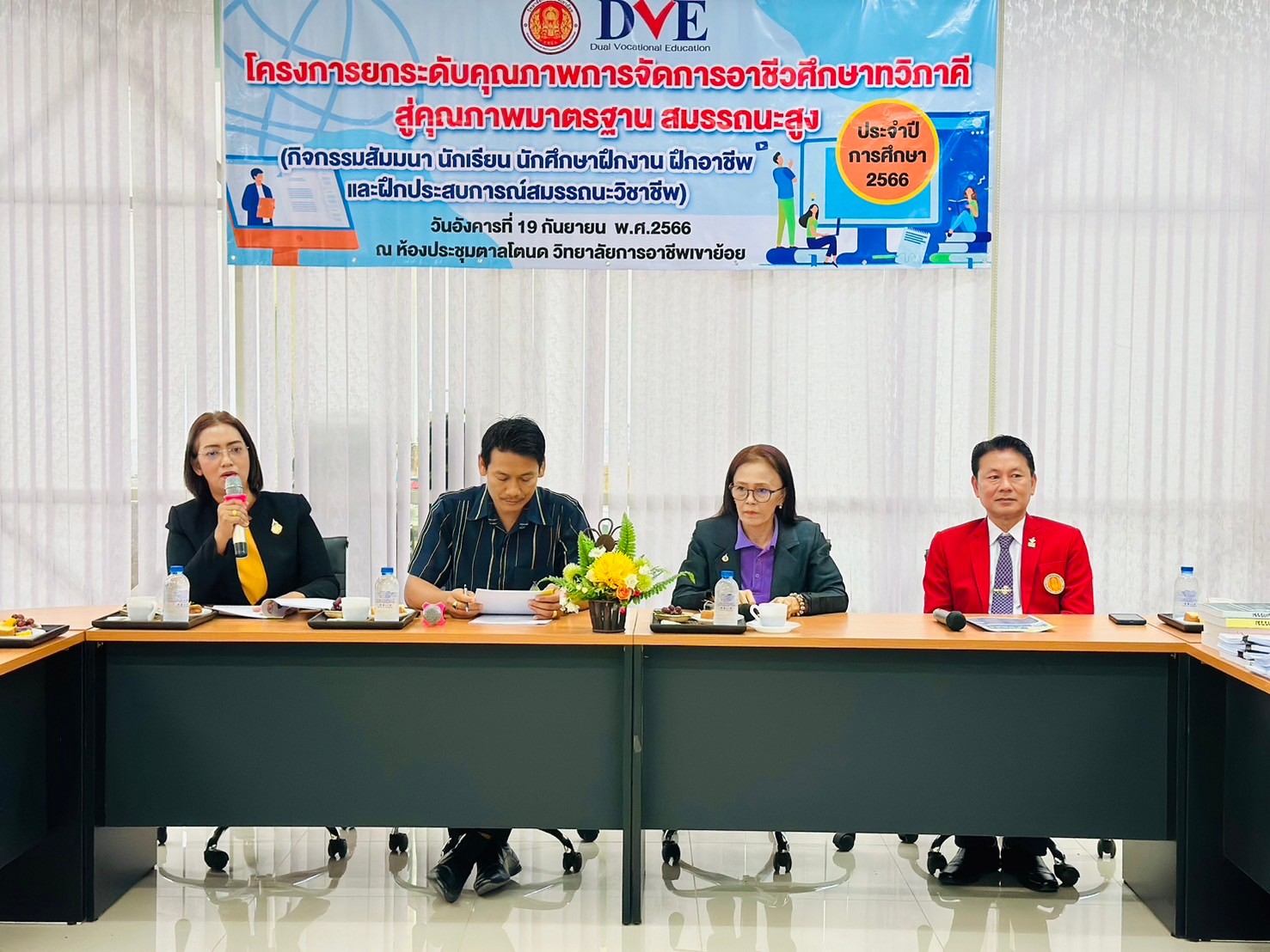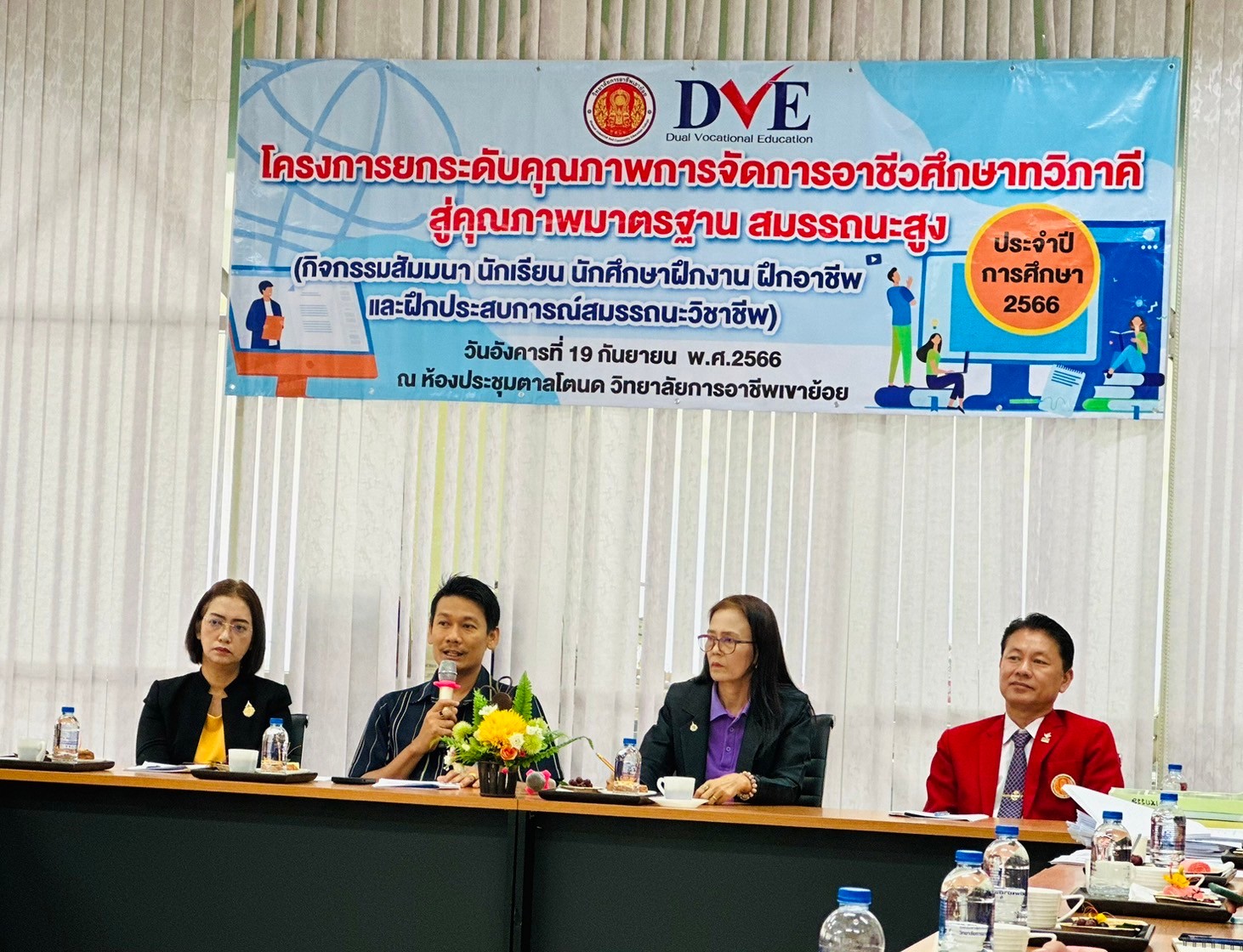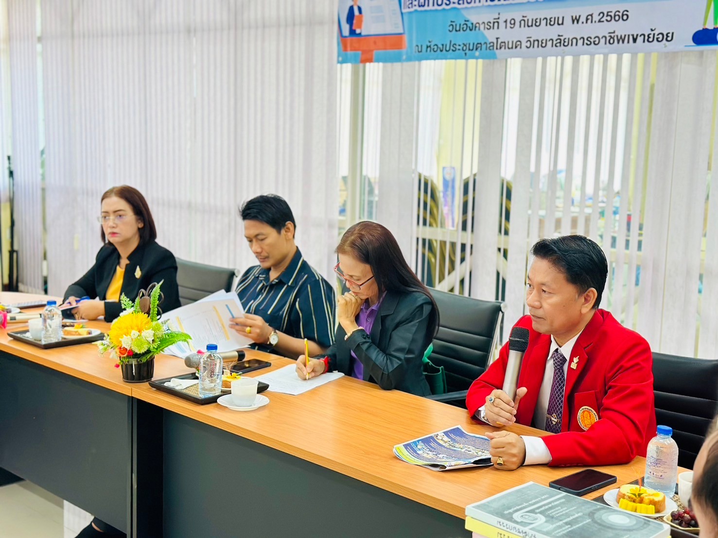 วันอังคาร ที่ 20 กุมภาพันธ์ พ.ศ. 2567 นายรุซลัญน์ เจ๊ะมิ ศึกษาธิการจังหวัดเพชรบุรี มอบหมายให้ นางยุพาภรณ์ จงเจริญ ผู้อำนวยการกลุ่มพัฒนาการศึกษา พร้อมด้วยเจ้าหน้าที่กลุ่มพัฒนาการศึกษา ประชุมเชิงปฏิบัติการร่วมกับคณะกรรมการพัฒนาหลักสูตรฯ คณะครู และผู้บริหาร จากวิทยาลัยการอาชีพเขาย้อย และคณะครูและผู้บริหารจาก รร.วัดหนองปรง (บุญมานุสรณ์) รร.บ้านหนองชุมพล สังกัด สพป.พบ 1 และ รร.หนองหญ้าปล้องวิทยา สังกัด สพม.เพชรบุรี ขับคลื่อนโครงการส่งเสริมเวทีและประชาคมเพื่อการจัดทำรูปแบบและแนวทางการพัฒนาหลักสูตรต่อเนื่องเชื่อมโยงการศึกษาขั้นพื้นฐานกับอาชีวศึกษาและอุดมศึกษา ประจำปีการศึกษา 2567 ในกิจกรรมการวิพากษ์หลักสูตร ณ ห้องประชุมตาลโตนด วิทยาลัยการอาชีพเขาย้อย อำเภอเขาย้อย จังหวัดเพชรบุรี