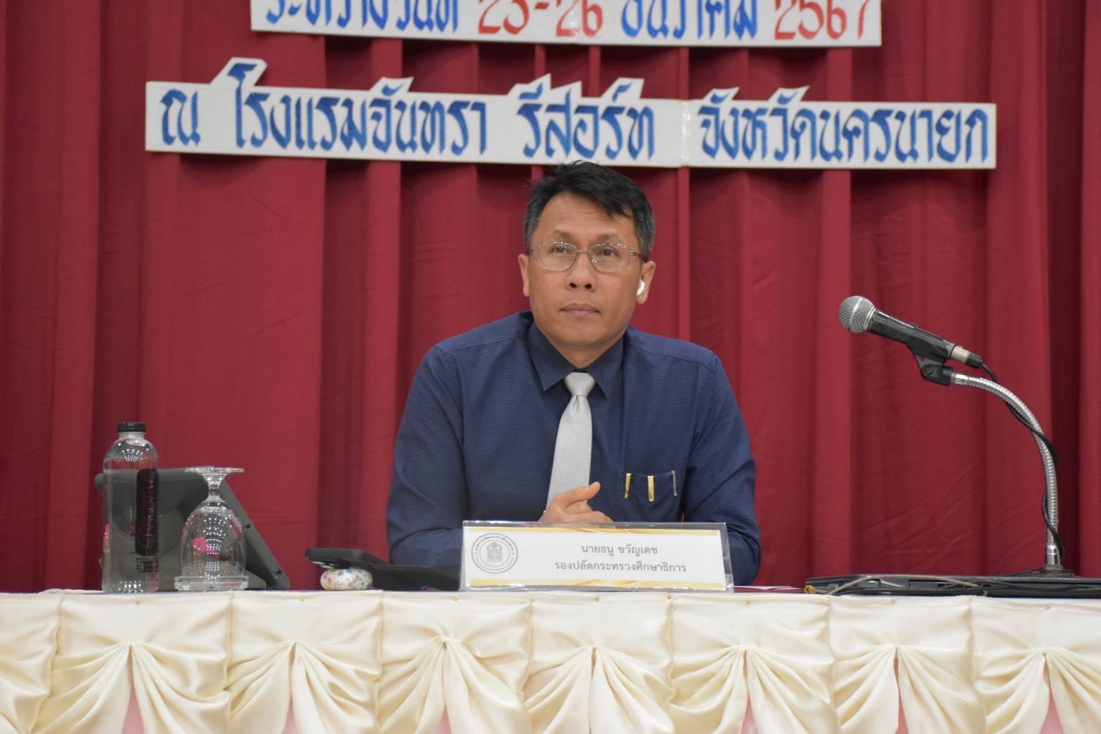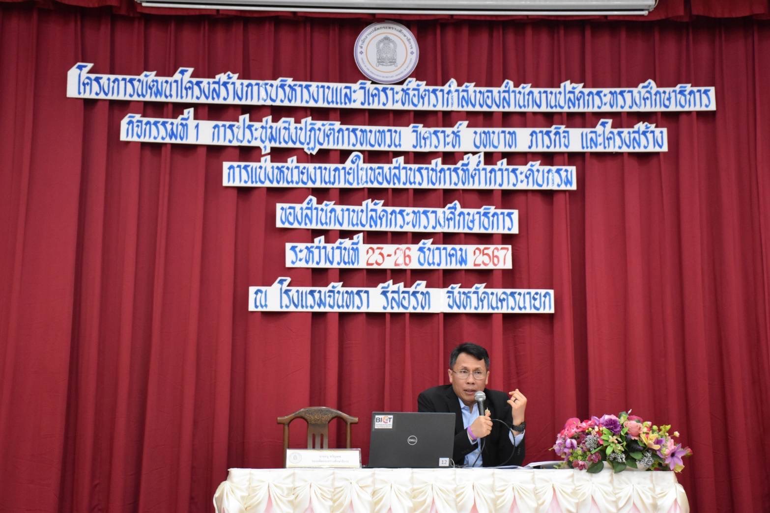 นายอดิศร แก้วเซ่ง ศึกษาธิการจังหวัดเพชรบุรี มอบหมายให้ นางยุพาภรณ์ จงเจริญ ผู้อำนวยการกลุ่มพัฒนาการศึกษา ร่วมประชุมเชิงปฏิบัติการทบทวน วิเคราะห์บทบาท ภารกิจ และโครงสร้างการแบ่งหน่วยงานภายในของส่วนราชการที่ต่ำกว่าระดับกรมของสำนักงานปลัดกระทรวงศึกษาธิการ ระหว่างวันที่ ๒๓ – ๒๖ ธันวาคม ๒๕๖๗ ณ โรงแรมจันทรา รีสอร์ท ตำบลท่าช้าง อำเภอเมืองนครนายก จังหวัดนครนายก โดยมี นายธนู ขวัญเดช รองปลัดกระทรวงศึกษาธิการ เป็นประธานในการประชุม