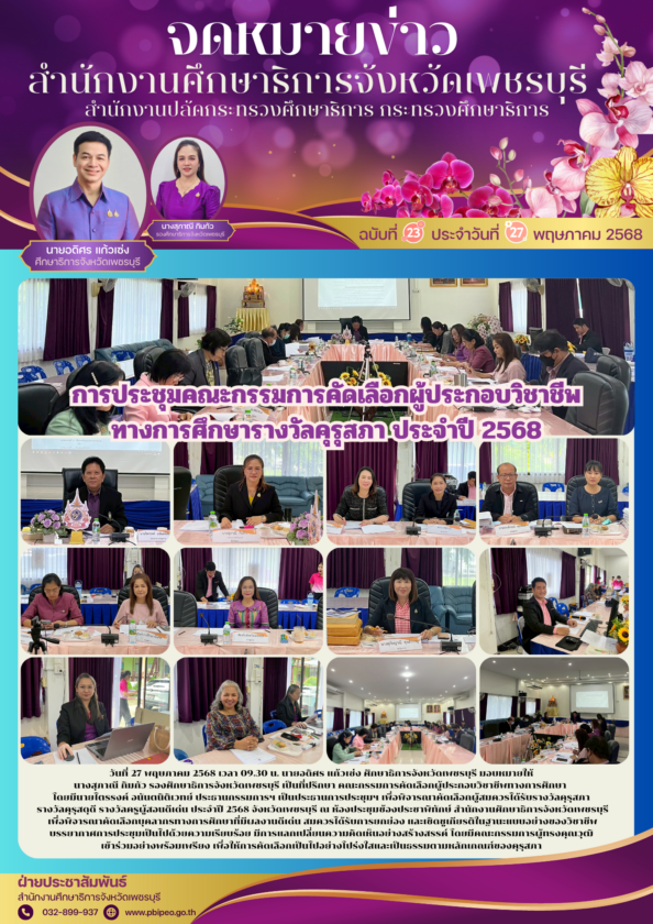 ประชุมเพื่อพิจารณาคัดเลือกผู้สมควรได้รับรางวัลคุรุสภา รางวัลคุรุสดุดี รางวัลครูผู้สอนดีเด่น ประจำปี 2568 จังหวัดเพชรบุรี