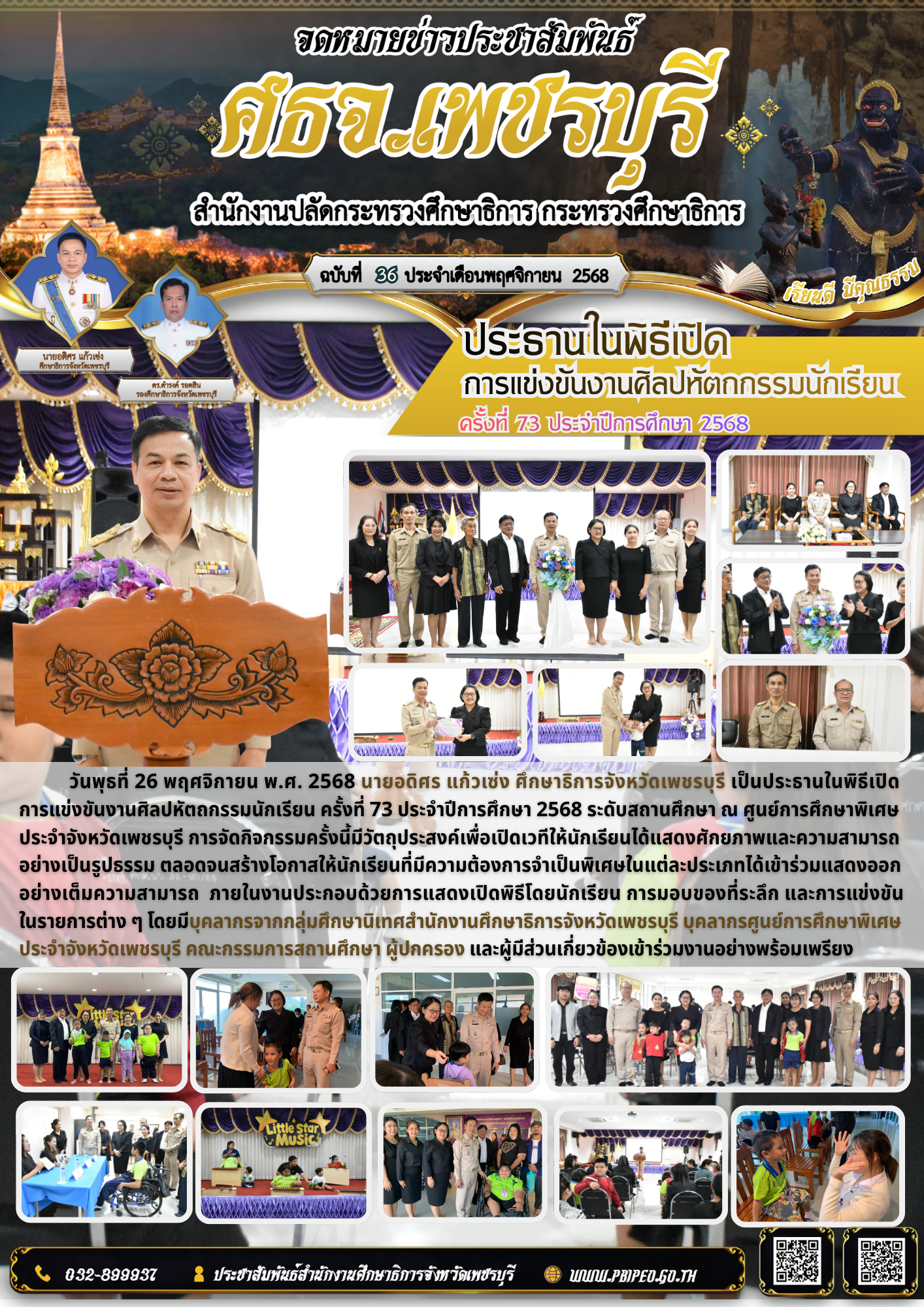 ประธานในพิธีเปิด การแข่งขันงานศิลปหัตถกรรมนักเรียน ครั้งที่ 73 ประจำปีการศึกษา 2568 ระดับสถานศึกษา ณ ศูนย์การศึกษาพิเศษ ประจำจังหวัดเพชรบุรี
