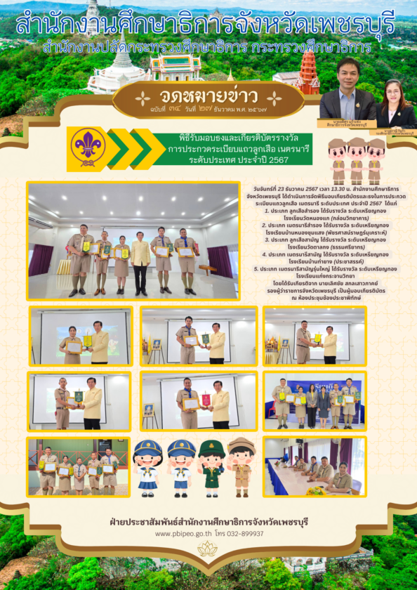 พิธีรับมอบธงและเกียรติบัตรรางวัลการประกวดระเบียบแถวลูกเสือ เนตรนารี ระดับประเทศ ประจำปี 2567
