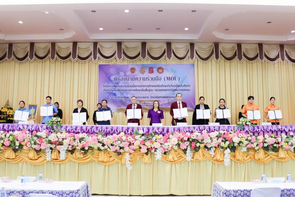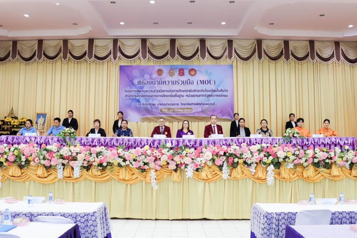 วันพุธ ที่ 20 มีนาคม 2567 เวลา 13.30 น. นายรุซลัญน์ เจ๊ะมิ ศึกษาธิการจังหวัดเพชรบุรี มอบหมายให้ นางสุภาณี กิมกัว รองศึกษาธิการจังหวัดเพชรบุรี ร่วมเป็นสักขีพยานพิธีลงนามความร่วมมือ (MOU) และร่วมเสวนา โครงการลงนาม ความร่วมมือการจัดการศึกษาอาชีวศึกษากับโรงเรียนในสังกัดสำนักงานคณะกรรมการการศึกษาขั้นพื้นฐาน หน่วยงานภาครัฐและเอกชน ณ ห้องประชุม อาคารอำนวยการ วิทยาลัยสารพัดช่างเพชรบุรี อำเภอเมืองฯ จังหวัดเพชรบุรี โดยมี นางยุพาภรณ์ จงเจริญ ผู้อำนวยการกลุ่มพัฒนาการศึกษา เข้าร่วมพิธีและรับฟังการเสวนาในครั้งนี้
