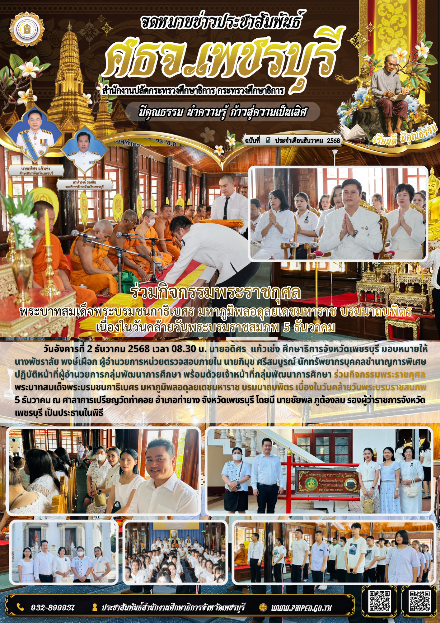 ร่วมกิจกรรมพระราชกุศล พระบาทสมเด็จพระบรมชนกาธิเบศร มหาภูมิพลอดุลยเดชมหาราช บรมนาถบพิตร เนื่องในวันคล้ายวันพระบรมราชสมภพ 5 ธันวาคม