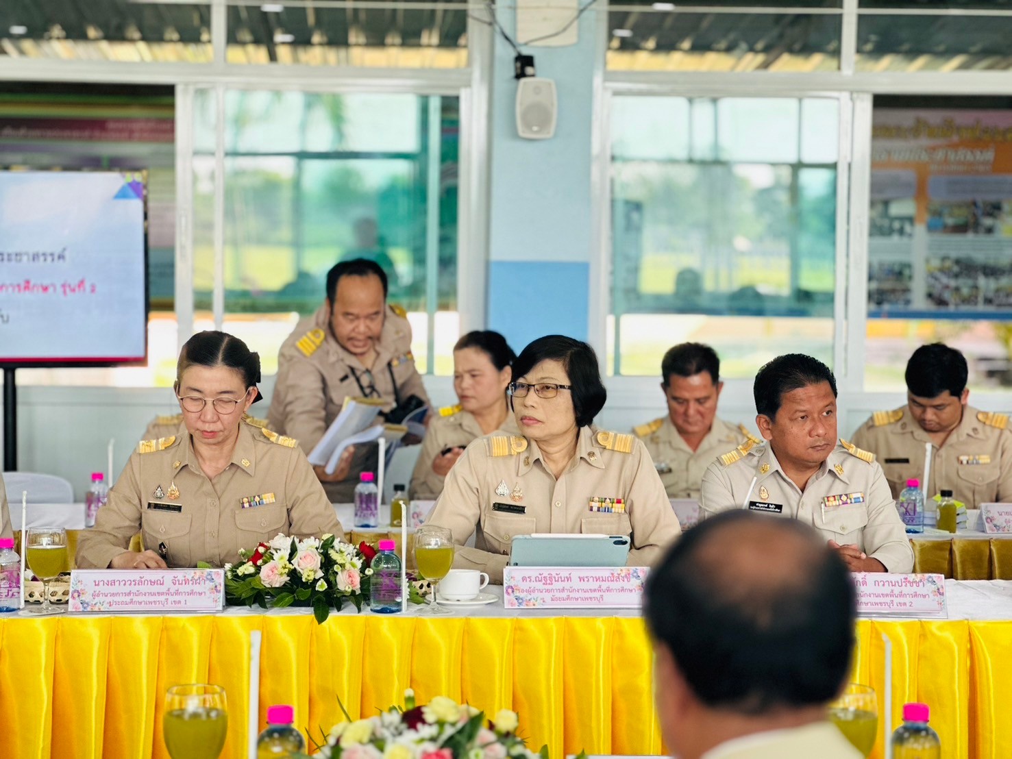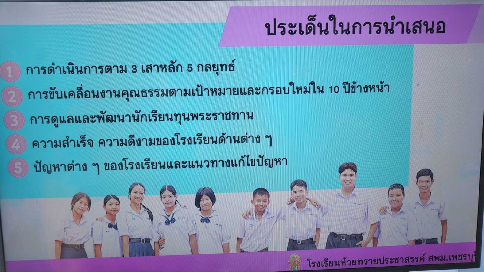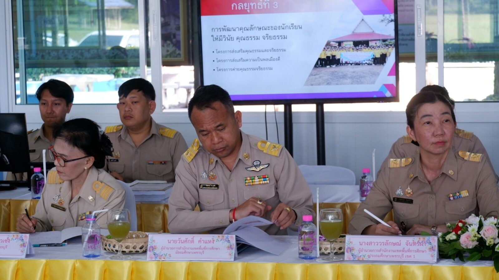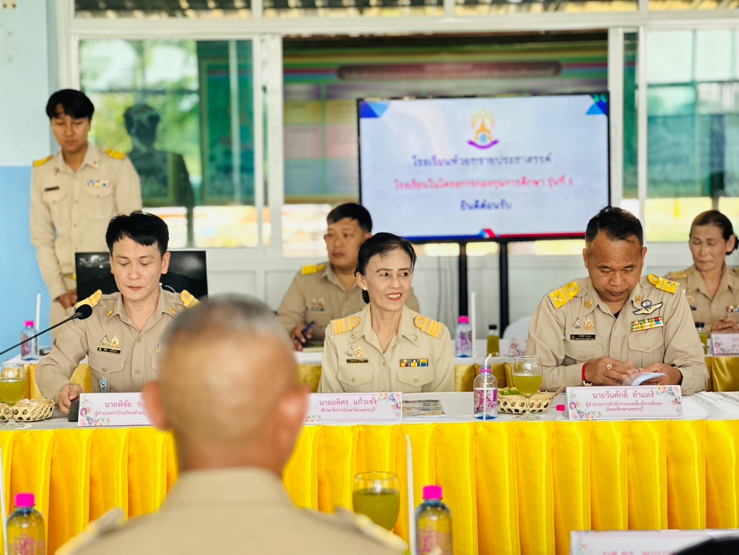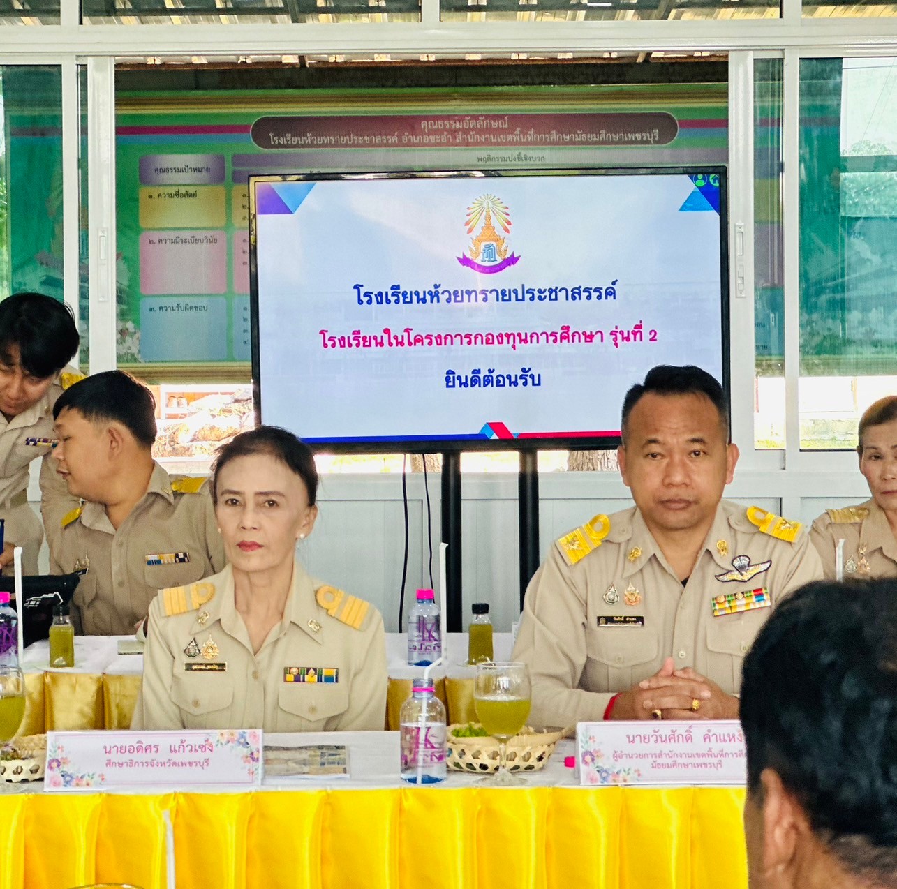 วันพฤหัสบดี ที่ 14 พฤศจิกายน 2567 นายอดิศร แก้วเซ่ง มอบหมายให้ นางยุพาภรณ์ จงเจริญ ผอ.กลุ่มพัฒนาการศึกษา พร้อมด้วย นายภิมุข ศรีสมบูรณ์ ผอ.กลุ่มบริหารงานบุคคล นางสาวณธรรศมน ฆังคัสสะ ศึกษานิเทศก์ชำนาญการพิเศษ นางสาวสุมาลี พูลพิพัทธ นักทรัพยากรบุคคลชำนาญการ และนางสาวอาริษา แสงปก เจ้าพนักงานธุรการปฏิบัติงาน ร่วมต้อนรับ พลอากาศเอก ชลิต พุกผาสุก องคมนตรี ในฐานะกรรมการโครงการกองทุนการศึกษา ในการลงพื้นที่ตรวจเยี่ยมและติดตามผลการพัฒนาการศึกษา การจัดการศึกษาตามแนวทาง 3 เสาหลัก 5 กลยุทธ์ ตลอดจนปัญหาขัดข้องด้านอื่น ๆ ของโรงเรียนในโครงการกองทุนการศึกษา พื้นที่จังหวัดเพชรบุรี ได้แก่ โรงเรียนห้วยทรายประชาสรรค์ สังกัด สพม.เพชรบุรี