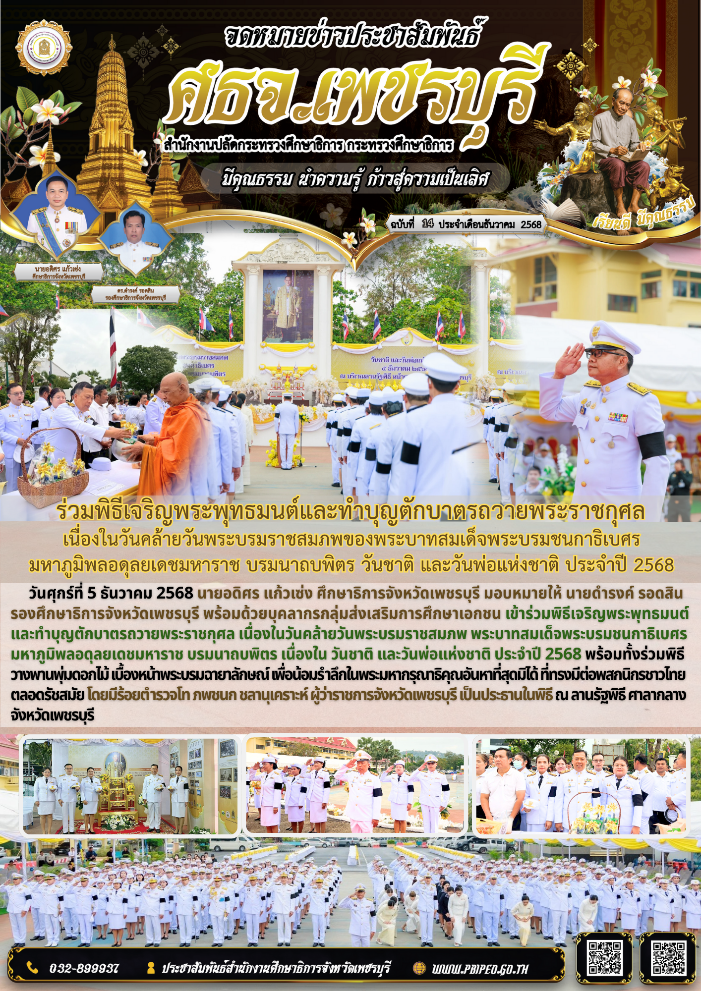 ร่วมพิธีเจริญพระพุทธมนต์และทำบุญตักบาตรถวายพระราชกุศล เนื่องในวันคล้ายวันพระบรมราชสมภพของพระบาทสมเด็จพระบรมชนกาธิเบศร มหาภูมิพลอดุลยเดชมหาราช บรมนาถบพิตร วันชาติ และวันพ่อแห่งชาติ ประจำปี 2568