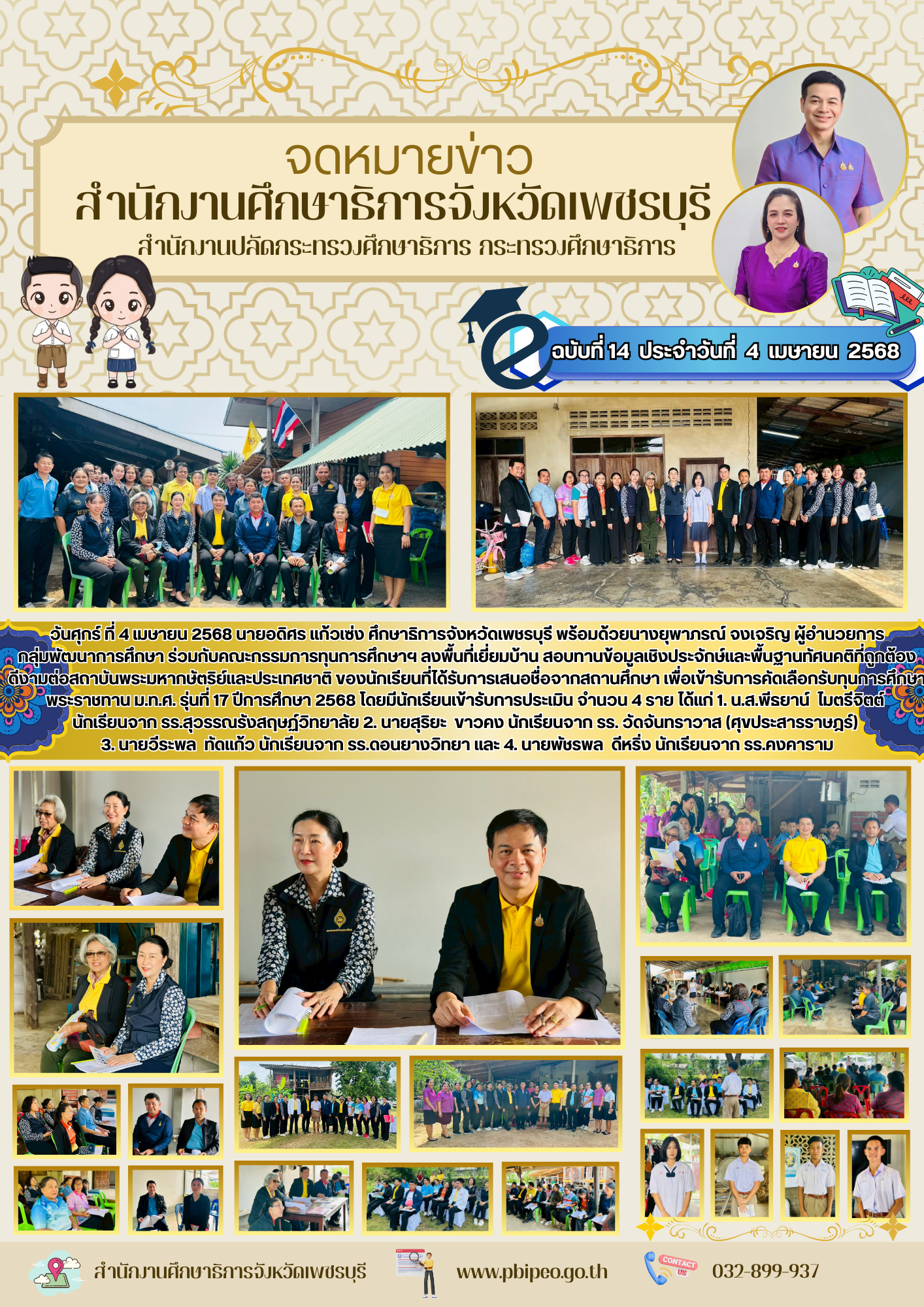 ลงพื้นที่เยี่ยมบ้าน สอบทานข้อมูลเชิงประจักษ์และพื้นฐานทัศนคติที่ถูกต้อง ดีงามต่อสถาบันพระมหากษัตริย์และประเทศชาติ ของนักเรียนที่ได้รับการเสนอชื่อจากสถานศึกษา เพื่อเข้ารับการคัดเลือกรับทุนการศึกษาพระราชทาน ม.ท.ศ. รุ่นที่ 17 ปีการศึกษา 2568