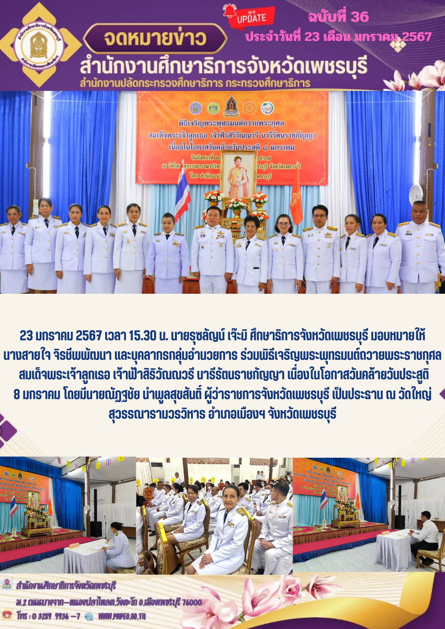 ร่วมพิธีเจริญพระพุทธมนต์ถวายพระราชกุศล สมเด็จพระเจ้าลูกเธอ เจ้าฟ้าสิริวัณณวรี นารีรัตนราชกัญญา เนื่องในโอกาสวันคล้ายวันประสูติ 8 มกราคม 2567