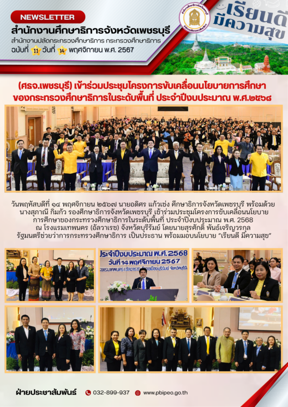 (ศธจ.เพชรบุรี)เข้าร่วมประชุมโครงการขับเคลื่อนนโยบายการศึกษา ของกระทรวงศึกษาธิการในระดับพื้นที่ ประจำปีงบประมาณ พ.ศ.๒๕๖๘