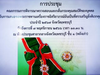 อันเป็นที่สรรเสริญยิ่งดิเรกคุณาภรณ์ ประจำปี 2567 โดยมีนายธรรมนูญ ศรีวรรธนะ รองผู้ว่าราชการจังหวัดเพชรบุรี เป็นประธานการประชุม ณ ห้องประชุมศาลากลางจังหวัดเพชรบุรี (หลังเก่า)