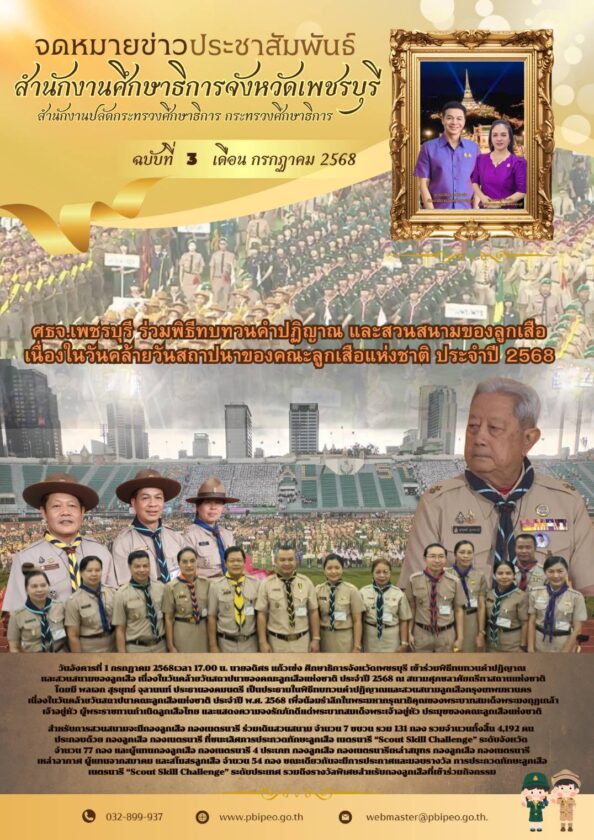 ศธจ.เพชรบุรี ร่วมพิธีทบทวนคำปฏิญาณ และสวนสนามของลูกเสือ เนื่องในวันคล้ายวันสถาปนาของคณะลูกเสือแห่งชาติ ประจำปี 2568