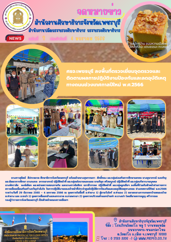 ศธจ.เพชรบุรี ลงพื้นที่ตรวจเยี่ยมจุดตรวจและ ติดตามผลการปฎิบัติงานป้องกันและลดอุบัติเหตุทางถนนช่วงเทศกาลปีใหม่ พ.ศ.2566