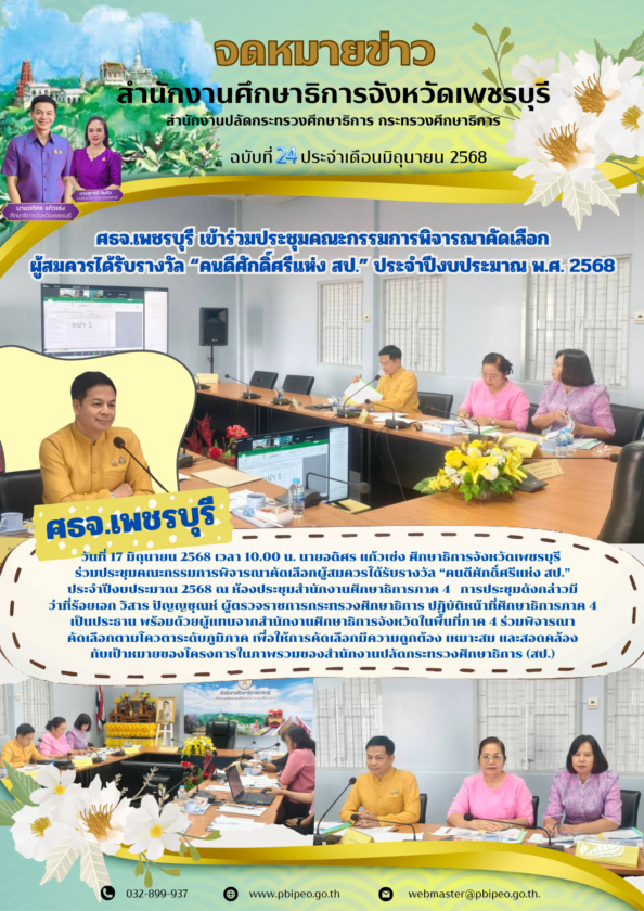 ศธจ.เพชรบุรี เข้าร่วมประชุมคณะกรรมการพิจารณาคัดเลือก ผู้สมควรได้รับรางวัล “คนดีศักดิ์ศรีแห่ง สป.” ประจำปีงบประมาณ พ.ศ. 2568