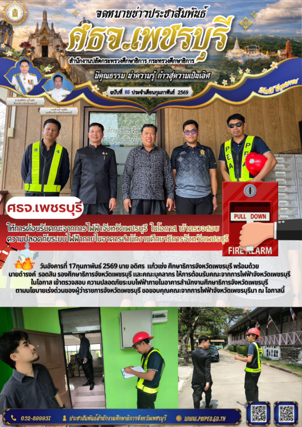 ศธจ.เพชรบุรี ให้การต้อนรับคณะจากการไฟฟ้าจังหวัดเพชรบุรี ในโอกาส เข้าตรวจสอบ ความปลอดภัยระบบไฟฟ้าภายในอาคารสำนักงานศึกษาธิการจังหวัดเพชรบุรี