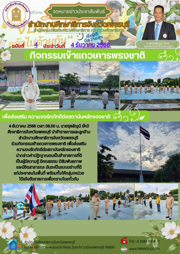 สำนักงานศึกษาธิการจังหวัดเพชรบุรี ร่วมกิจกรรมเข้าแถวเคารพธงชาติ เพื่อส่งเสริมความจงรักภักดีต่อสถาบันหลักของชาติ