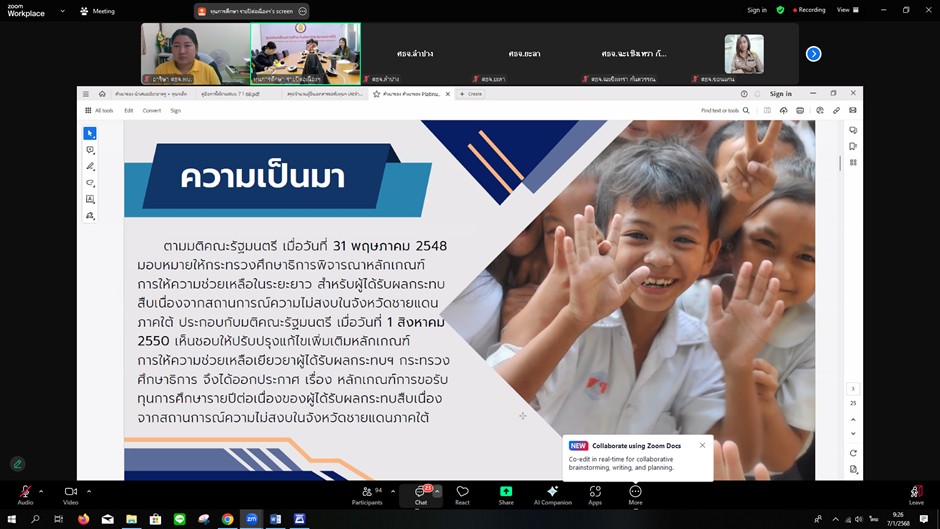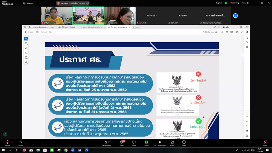 อบรมการใช้งานระบบฐานข้อมูล ทุนการศึกษารายปีต่อเนื่องของผู้ได้รับผลกระทบ สืบเนื่องจากสถานการณ์ความไม่สงบในจังหวัด ชายแดนภาคใต้ ผ่านระบบ ZOOM CLOUD MEETING