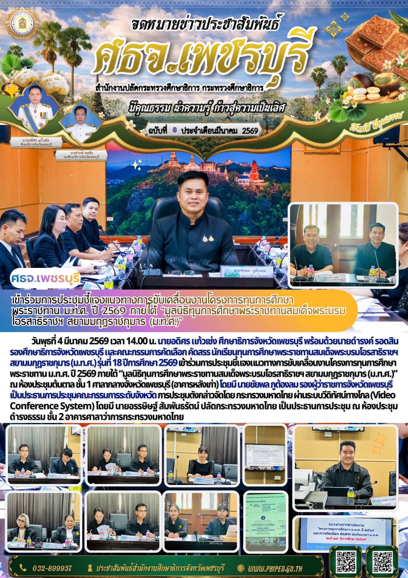 เข้าร่วมการประชุมชี้แจงแนวทางการขับเคลื่อนงานโครงการทุนการศึกษา พระราชทาน ม.ท.ศ. ปี 2569 ภายใต้ “มูลนิธิทุนการศึกษาพระราชทานสมเด็จพระบรมโอรสาธิราชฯ สยามมกุฎราชกุมาร (ม.ท.ศ.)”