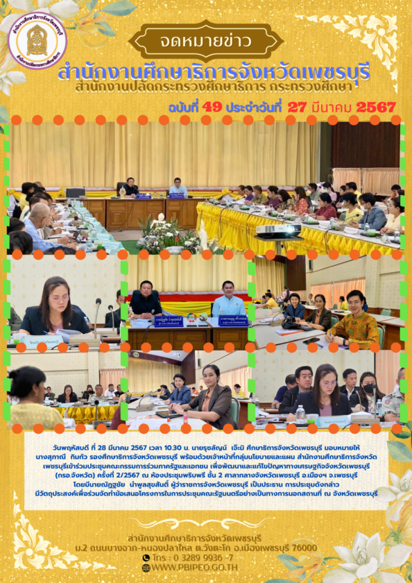 เข้าร่วมประชุมคณะกรรมการร่วมภาครัฐและเอกชน เพื่อพัฒนาและแก้ไขปัญหาทางเศรษฐกิจจังหวัดเพชรบุรี (กรอ.จังหวัด) ครั้งที่ 2/2567