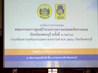 เข้าร่วมประชุมคณะกรรมการศูนย์อำนวยการความปลอดภัยทางถนนจังหวัดเพชรบุรี เตรียมความพร้อมในการดำเนินงานป้องกันและลดอุบัติเหตุทางถนนช่วงสงกรานต์