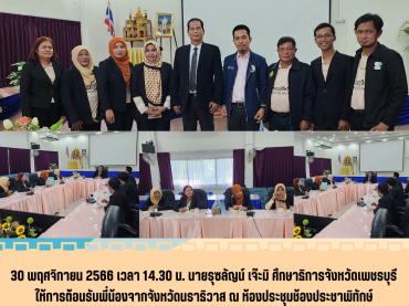 ศึกษาธิการจังหวัดเพชรบุรี ให้การต้อนรับพี่น้องจากจังหวัดนราธิวาส แวะมาทักทาย เยี่ยมเยือน ในโอกาสไปรับทุนส่งเสริมการศึกษาไทย ของบริษัทเทพผดุงพรมะพร้าว จำกัด