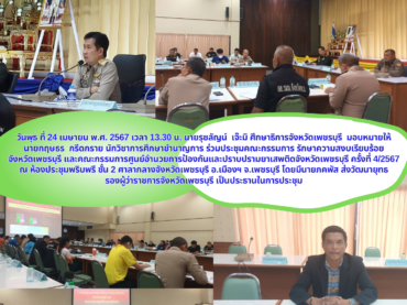 ประชุมคณะกรมการจังหวัด และหัวหน้าส่วนราชการจังหวัดเพชรบุรี ประจำเดือนเมษายน 2567 ครั้งที่ 4/2567