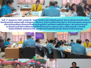 (ศธจ.เพชรบุรี) นายสุรศักดิ์ พันธ์เจริญวรกุล รัฐมนตรีช่วยว่าการกระทรวงศึกษาธิการลงพื้นที่จังหวัดเพชรบุรี ประชุมมอบนโยบาย ติดตามข้อมูลการจัดการศึกษาตามนโยบายของรัฐบาลและนโยบาย “เรียนดี มีความสุข” ของรัฐมนตรีว่าการกระทรวงศึกษาธิการ