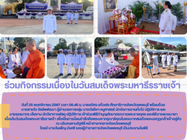 เข้าร่วมพิธีทำบุญตักบาตรถวายพระราชกุศล และพิธีวางพวงมาลา เนื่องในวันสมเด็จพระมหาธีรราชเจ้า
