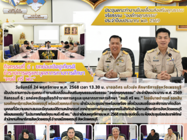ประชุมคณะทำงานขับเคลื่อนส่งเสริมคุณธรรมจริยธรรม “องค์กรคุณธรรม” ประจำปีงบประมาณ พ.ศ. 2569 กิจกรรมที่ 6 : ยกย่องเชิดชูเกียรติข้าราชการครูและบุคลากรทางการศึกษา “คนดี ศรี พบ.”