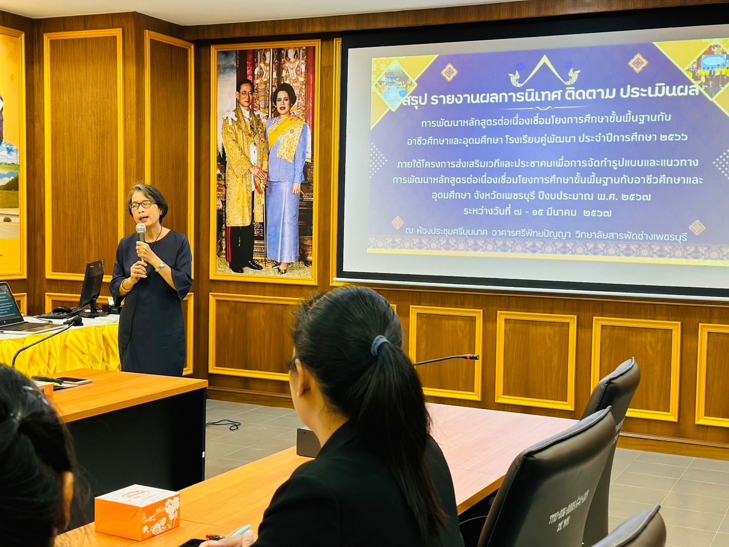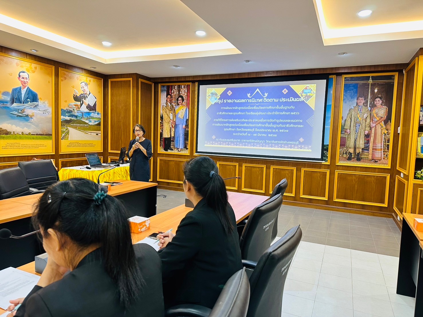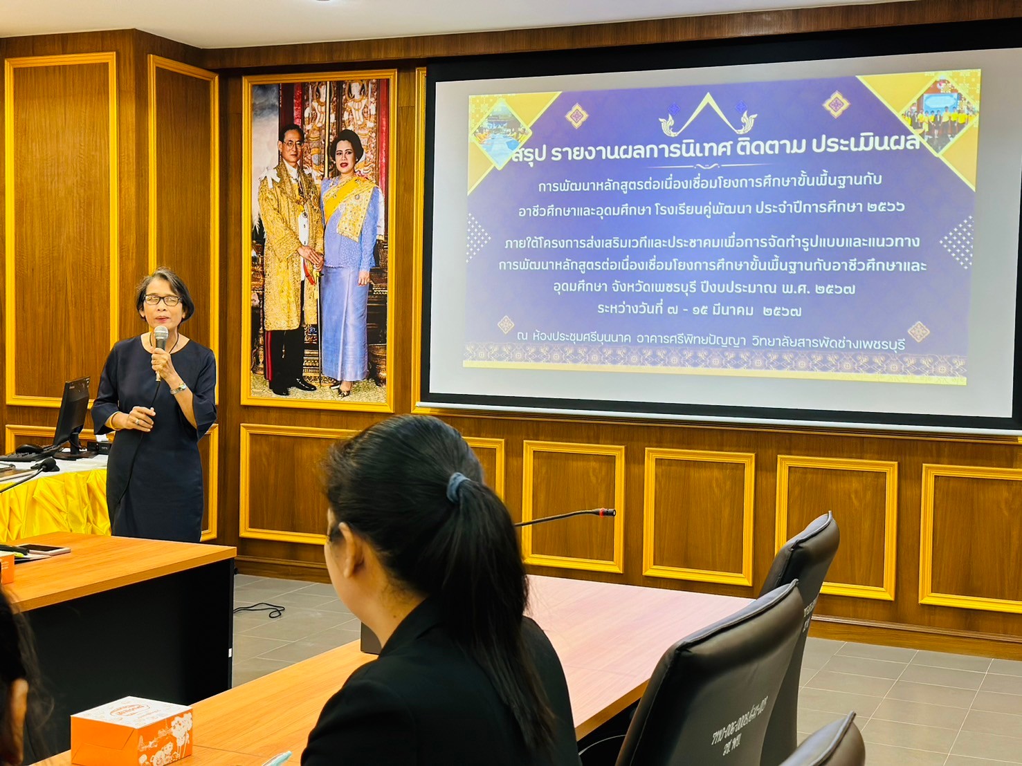 วันศุกร์ ที่ 15 มีนาคม 2567 นายรุซลัญน์ เจ๊ะมิ ศึกษาธิการจังหวัดเพชรบุรี มอบหมายให้ นางยุพาภรณ์ จงเจริญ ผู้อำนวยการกลุ่มพัฒนาการศึกษา พร้อมด้วยบุคลากรสำนักงานศึกษาธิการจังหวัดเพชรบุรี ร่วมกับคณะกรรมการ ฯ และคณะครู ผู้บริหารวิทยาลัยสารพัดช่างเพชรบุรี ประชุมเชิงปฏิบัติการสรุปผลการนิเทศ ติดตาม ประเมินผล การพัฒนาหลักสูตรต่อเนื่องเชื่อมโยงการศึกษาขั้นพื้นฐานกับอาชีวศึกษาและอุดมศึกษา โรงเรียนคู่พัฒนา ประจำปีการศึกษา 2566 ภายใต้โครงการส่งเสริมเวทีและประชาคมเพื่อการจัดทำรูปแบบและแนวทางการพัฒนาหลักสูตรต่อเนื่องเชื่อมโยงการศึกษาขั้นพื้นฐานกับอาชีวศึกษาและอุดมศึกษา จังหวัดเพชรบุรี ปีงบประมาณ พ.ศ. 2567 ณ ห้องประชุมศรีบุนนาค อาคารศรีพิทยปัญญา วิทยาลัยสารพัดช่างเพชรบุรี อำเภอเมืองฯ จังหวัดเพชรบุรี