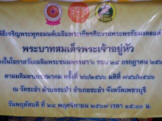 วันพฤหัสบดีที่ 28 พฤศจิกายน 2567 เวลา 15.00 น. นายอดิศร แก้วเซ่ง ศึกษาธิการจังหวัดเพชรบุรี มอบหมายให้นายภิมุข ศรีสมบูรณ์ ผู้อำนวยการกลุ่มบริหารงานบุคคล พร้อมด้วยบุคลากรกลุ่มบริหารงานบุคคล และงานคุรุสภา เข้าร่วมพิธีเจริญพระพุทธมนต์เฉลิมพระเกียรติถวายพระพรชัยมงคล พระบาทสมเด็จพระเจ้าอยู่หัว เนื่องในโอกาสวันเฉลิมพระชนมพรรษา 6 รอบ 28 กรกฎาคม 2567 ณ วัดชะอำ อ.ชะอำ จ.เพชรบุรี โดยมีนายเลิศชัย สกลเสาวภาคย์ เป็นประธานฝ่ายฆราวาส ในพิธีมีหัวหน้าหน่วยงานราชการในจังหวัดเพชรบุรี ข้าราชการ ภาคเอกชน ตลอดจนประชาชนเข้าร่วมพิธีโดยพร้อมเพรียงกัน