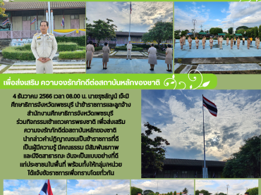 สำนักงานศึกษาธิการจังหวัดเพชรบุรี ร่วมกิจกรรมเข้าแถวเคารพธงชาติ เพื่อส่งเสริมความจงรักภักดีต่อสถาบันหลักของชาติ