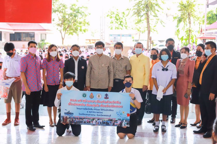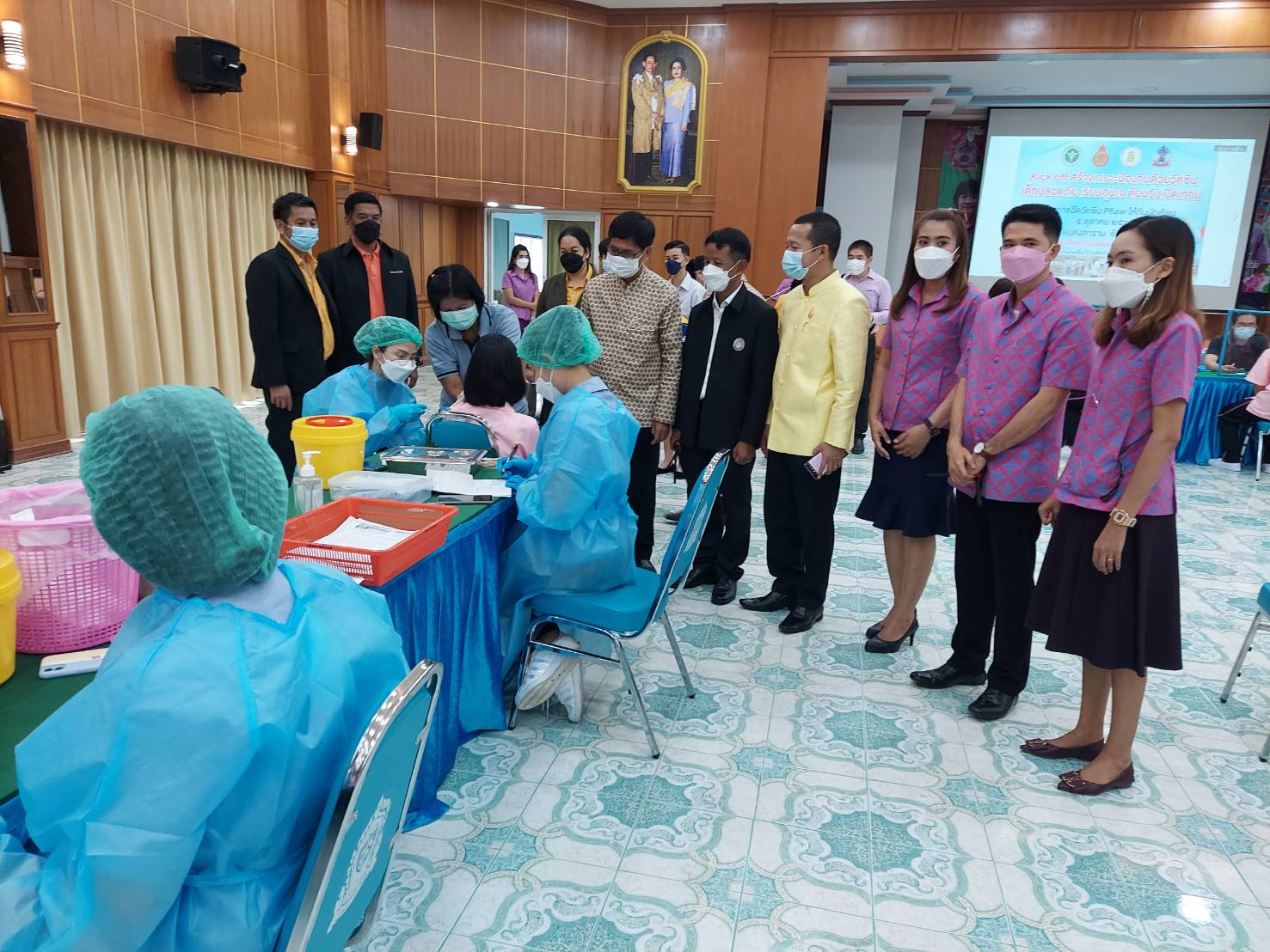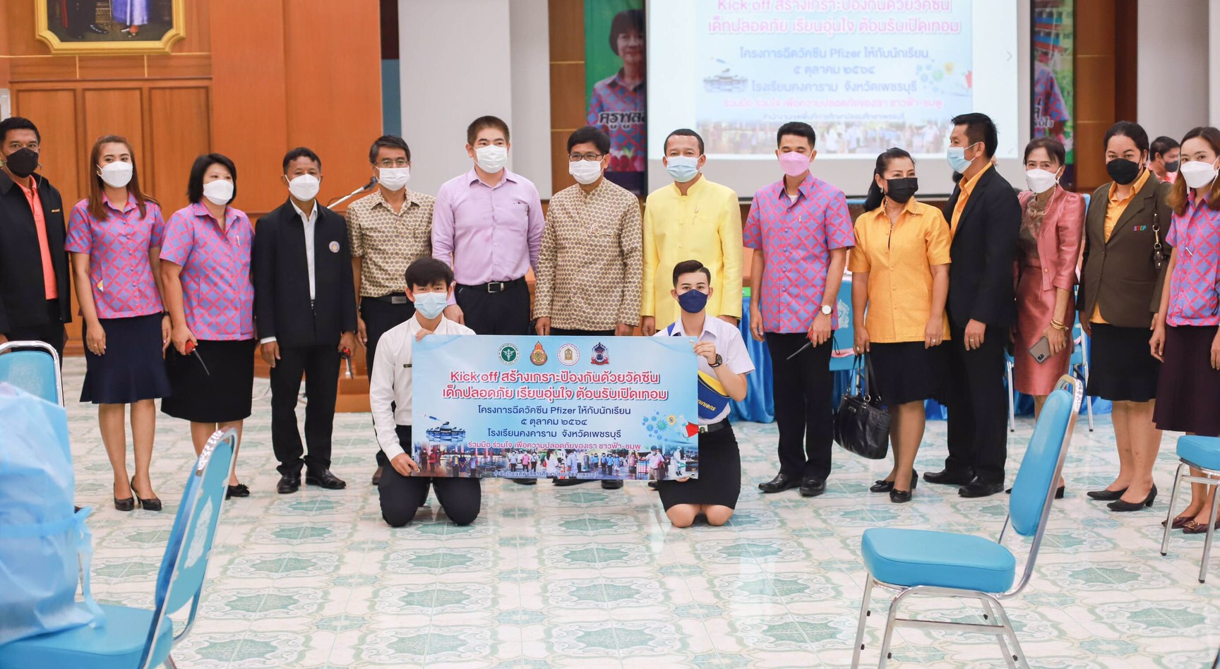 ….นายสมสันต์ ลือกำลัง ศึกษาธิการจังหวัดเพชรบุรี ร่วมกับ นายเดชา ปาณะศรี รองผู้อำนวยการสำนักงานเขตพื้นที่การศึกษามัธยมศึกษาเพชรบุรี และคณะ เข้าตรวจเยี่ยมการฉัดวัคซีน “Kick Off สร้างเกราะป้องกันด้วยวัคซีนเด็กปลอดภัย เรียนอุ่นใจ ต้อนรับเปิดเทอม” โครงการฉีดวัคซีน Pfizerให้นักเรียนในจังหวัดเพชรบุรี ณ โรงเรียนคงคาราม, โรงเรียนอรุณประดิษฐ, โรงเรียนบ้านลาดวิทยา 5 ตุลาคม 2564
