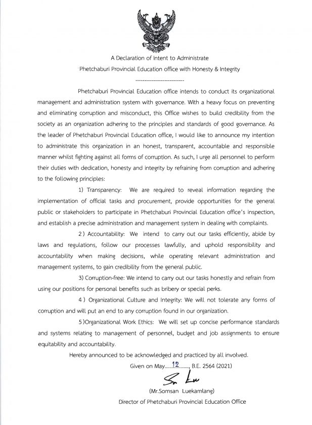 มาตรการส่งเสริมคุณธรรมและความโปร่งใสภายในหน่วยงาน
